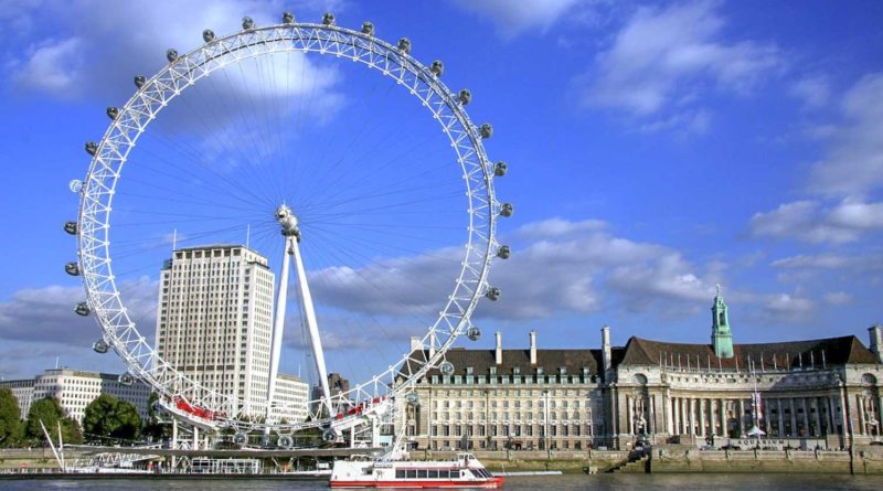 London Eye- it is a very big observation wheel. It has capsules that you can ride in to see an aerial view of London. It is on the banks of the Thames.