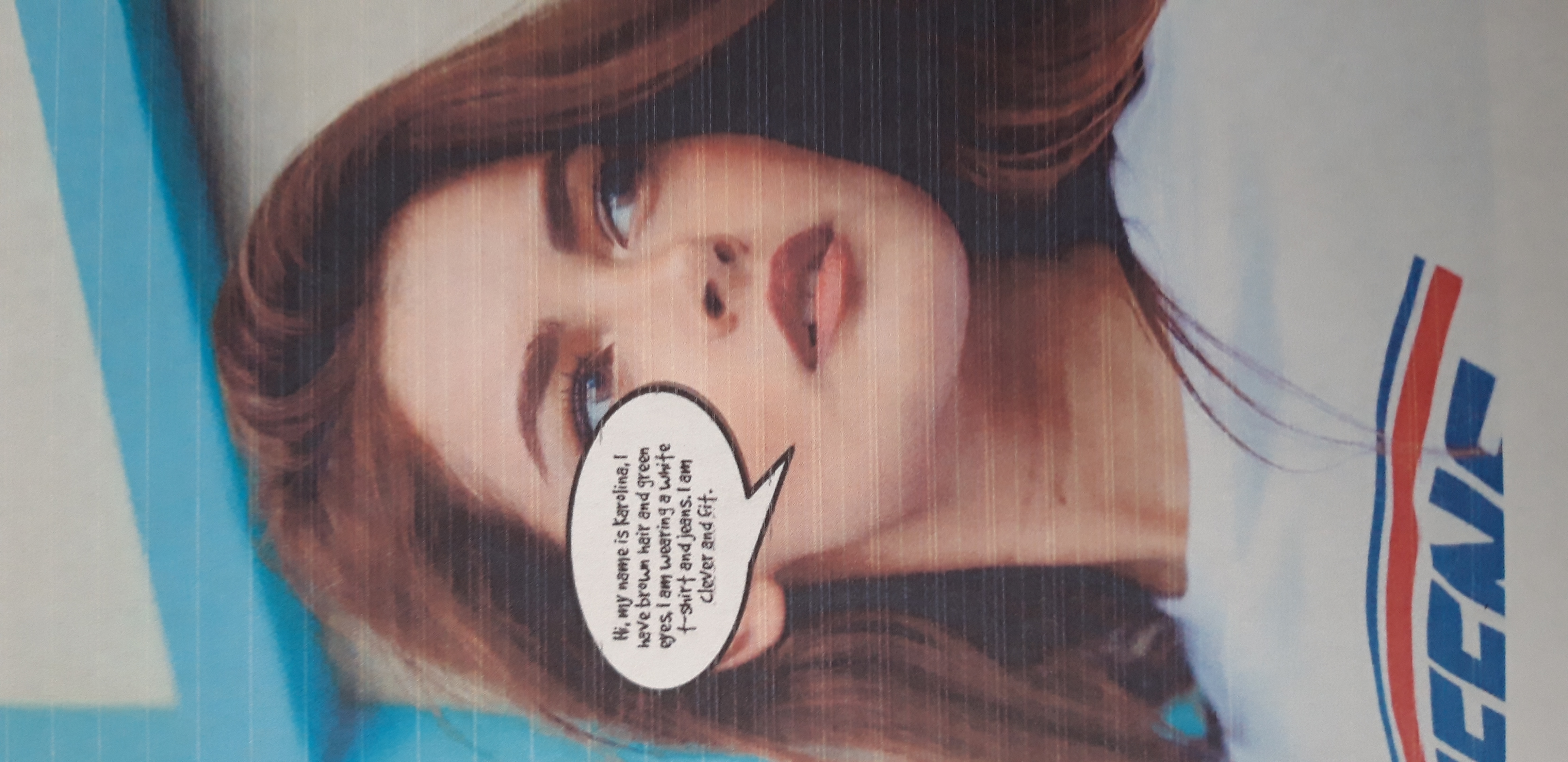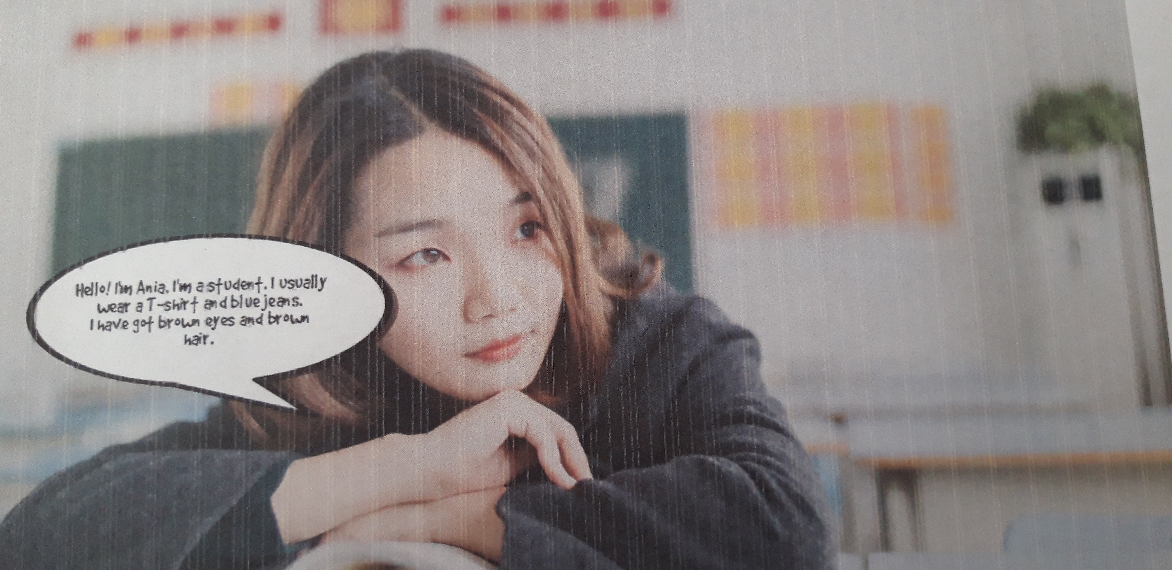 Uczniowie klasy V uczyli się opisywać wygląd człowieka. Aby zadanie było ciekawsze, piątoklasiści pobierali obrazki ze strony unsplash.com, a następnie przetwarzali je na stronie phrase.it.