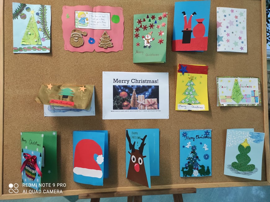 Tuż przed świętami Bożego Narodzenia uczniowie zapoznali się ze zwyczajami bożonarodzeniowymi panującymi w Wielkiej Brytanii i USA. Oglądali film dokumentujący przygotowania brytyjskiej rodziny do świąt, czytali krótkie artykuły o tradycjach świątecznych oraz wzięli udział w ankiecie dla świętego Mikołaja. Czwartoklasiści i piątoklasiści śpiewali również piosenki świąteczne, np. „We wish you a Merry Christmas” i wykonali kartki z życzeniami bożonarodzeniowymi dla swoich bliskich. Karki można było podziwiać na szkolnej gazetce.
