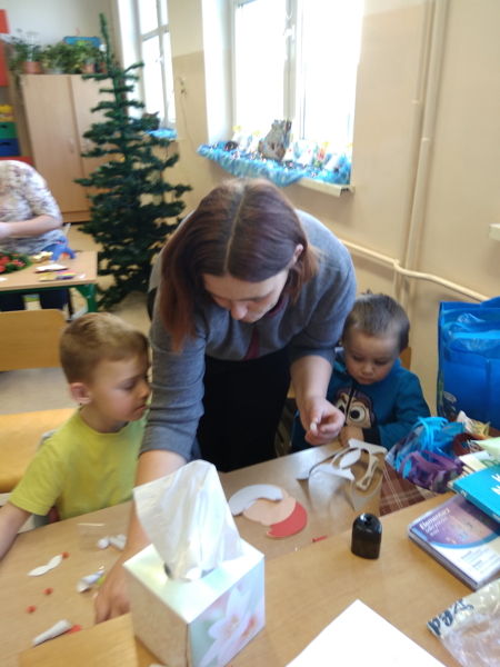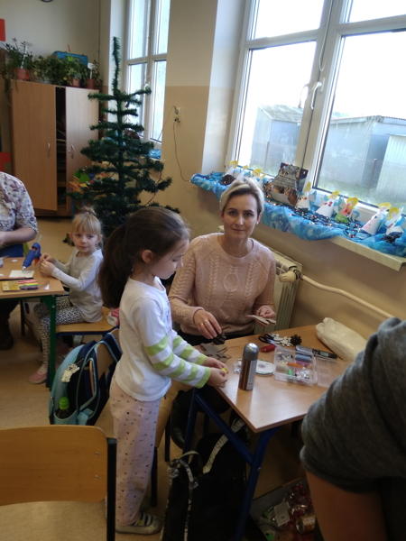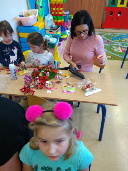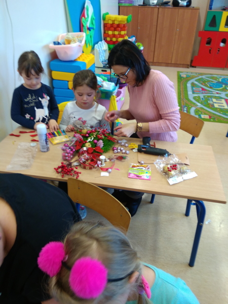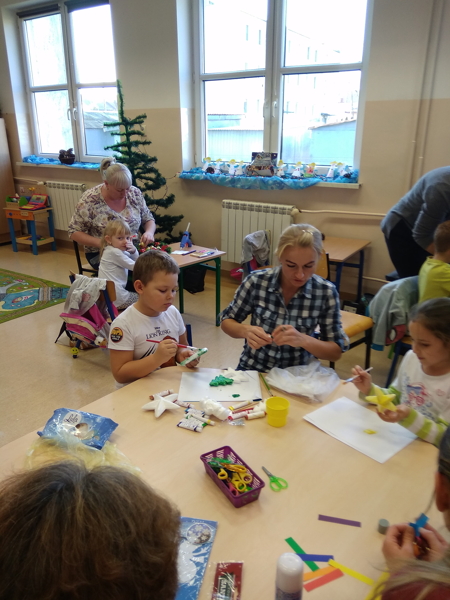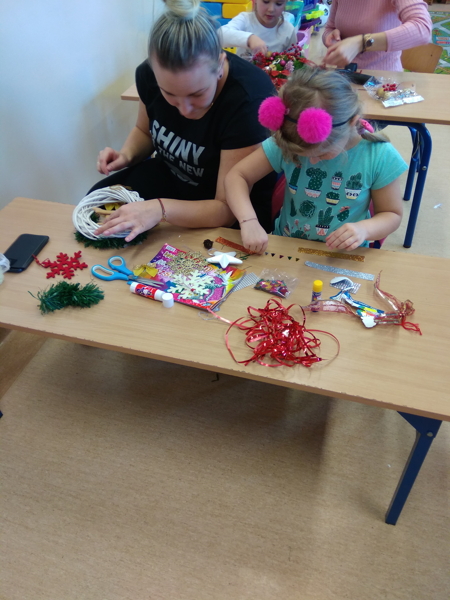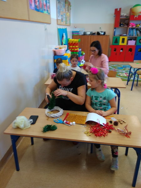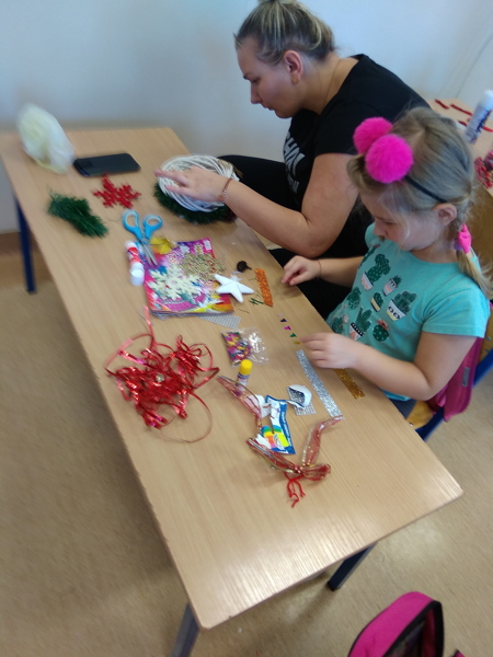 Przedszkolaki z rodzicami wykonali ozdoby świąteczne