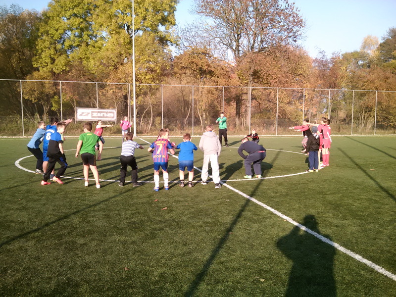 Uczniowie klasy IV podczas zajęć koła sportowego