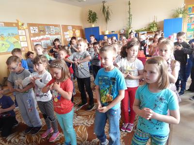 • Uczniowie klasy I podczas zabaw integrujących grupę