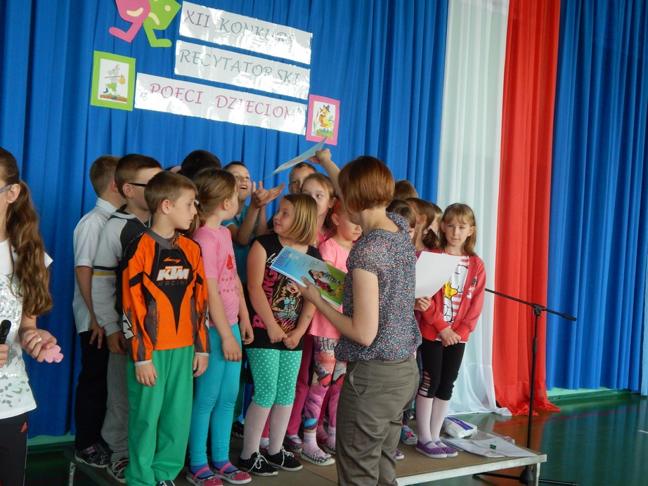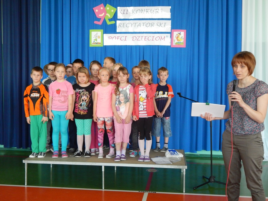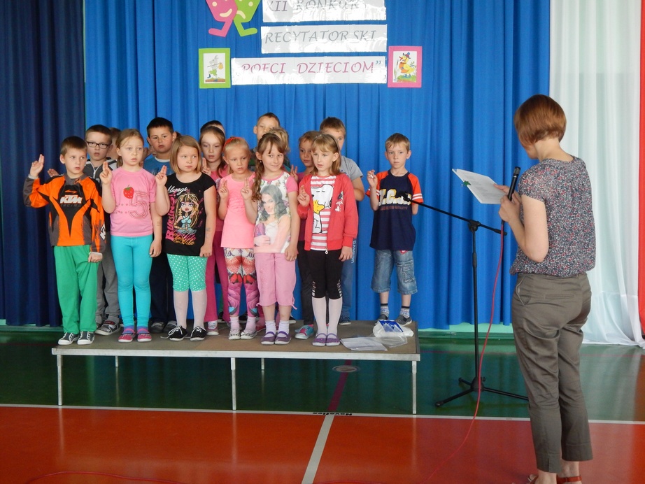 Dnia 6 czerwca 2014 r. w przerwie konkursu recytatorskiego odbyło się w naszej szkole Pasowanie na Czytelnika uczniów klasy I. Pierwszoklasiści najpierw musieli wykazać się znajomością Regulaminu dla Najmłodszych Czytelników. W tym celu odpowiadali na pytania zadawane przez starszych kolegów. Wszystkie odpowiedzi były poprawne. Następnie na ręce bibliotekarki szkolnej Jolanty Korkosz złożyli uroczyste ślubowanie zapewniając o tym,