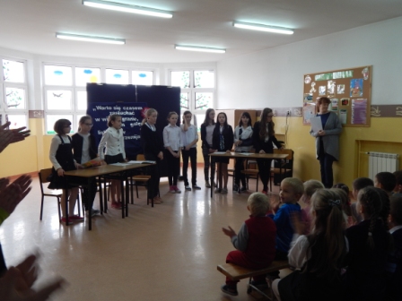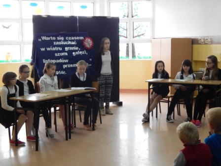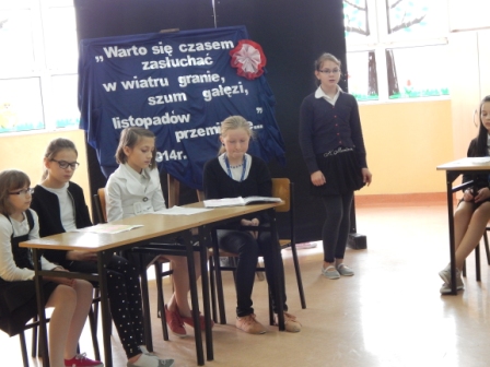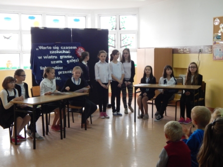 Apel z tej okazji przygotowała klasa V pod kierunkiem pani Magdaleny Skalskiej. Uczniowie w miłym dla oka i ucha przedstawieniu, przypomnieli sobie drogę Ojczyzny do niepodległości.