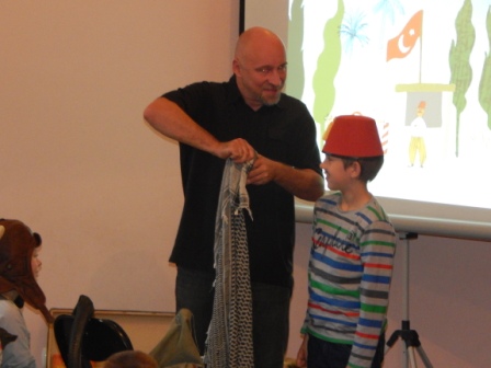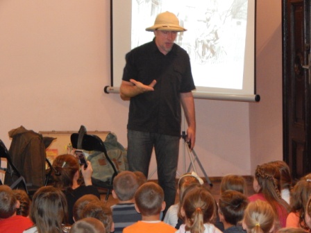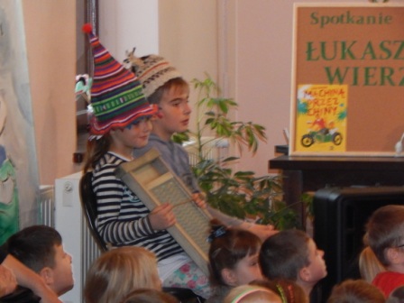 W dniu 17 października uczniowie klasy II, III i IV uczestniczyli w spotkaniu z Wielkopolaninem Łukaszem Wierzbickim – podróżnikiem i pisarzem książek dziecięcych organizowanym przez Gminną Bibliotekę Publiczną w Mycielinie. Dzieci poznały życiorys i twórczość pisarza, który przybliżył im to wszystko łącząc elementy wykładu, prezentacji multimedialnej, kabaretu i inscenizacji historycznej. Poprzez aktywny udział w spotkaniu autor zyskał ogromną sympatię uczniów, a nabyte przez szkolną bibliotekę książki pana Łukasza cieszą się ogromnym zainteresowaniem.