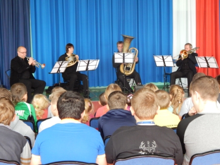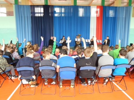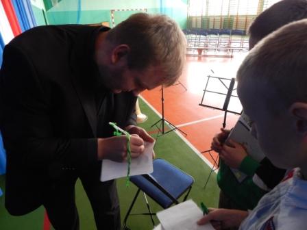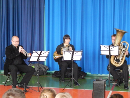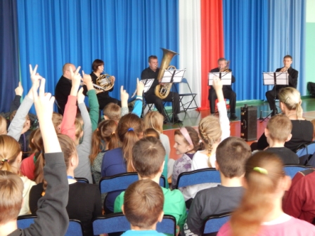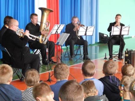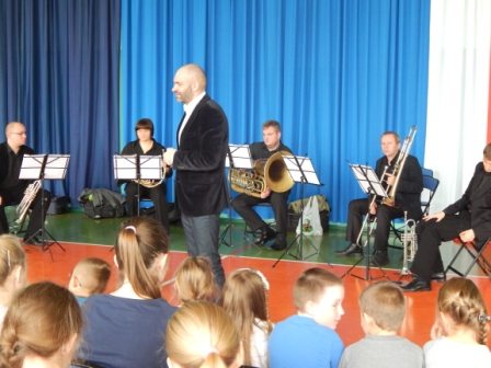 14 listopada gościliśmy w naszej szkole muzyków Filharmonii Kaliskiej, którzy uświetnili nam dzień lekcją dobrej muzyki. Wszyscy z uwagą wsłuchiwali się w słowa prowadzącego koncert poparte dźwiękami płynącymi z instrumentów dętych blaszanych. Zafascynowani występem uczniowie poprosili muzyków o autografy, których ci z radością rozdawali.