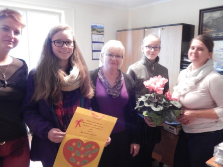 W dniu dzisiejszym uczennice z Samorządu Uczniowskiego pod opieką pani Beaty Kozigórskiej i pani Magdaleny Skalskiej odwiedziły pracowników Gminnego Ośrodka Pomocy Społecznej. W związku z obchodzonym dziś dniem dziewczęta w imieniu Dyrektora szkoły i całej szkolnej społeczności złożyły życzenia oraz podziękowały za owocną współpracę.