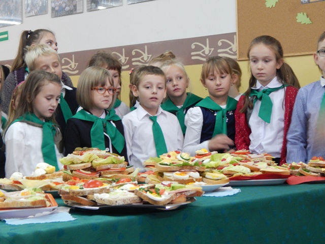 14 października bieżącego roku w ramach edukacji zdrowotnej szkoła promowała ogólnopolską akcję „Śniadanie daje moc”. Uczniowie wraz z wychowawcami samodzielnie przygotowali kanapki na szkolne śniadanie, po czym wysłuchali prelekcji o istocie śniadania, dzięki któremu dzieci mają energię do nauki, lepiej koncentrują się podczas lekcji i mają siłę do zabawy. To najlepszy start w nowy dzień! – powiedziała o śniadaniu higienistka szkolna pani Elżbieta Chojnacka.