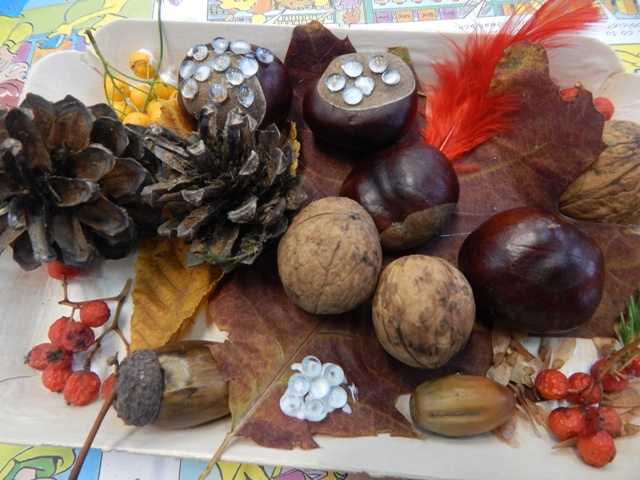 Jesień już w pełni zagościła, dlatego uczniowie klasy II b wykorzystując piękne DARY JESIENI, na zajęciach technicznych wykonali jesienne kompozycje i stroiki. Zastosowali do tego wiele jesiennych skarbów: liście, szyszki, kasztany, żołędzie, orzechy, jarzębinę, wrzos, mech, gałązki itp.