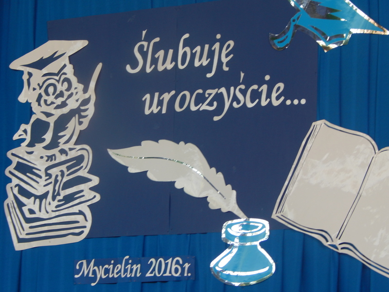 W miniony piątek obchodziliśmy w szkole Dzień Edukacji Narodowej. Nasi nauczyciele i pozostali pracownicy szkoły usłyszeli w tym dniu wiele pięknych życzeń i ciepłych słów wdzięczności. Najważniejszym jednak punktem programu było Ślubowanie uczniów klasy I przygotowane przez p. Beatę Kozigórską. Uroczystość zaszczycili swoją obecnością zaproszeni goście: p. Jerzy Matuszewski – wójt gminy Mycielin, ks. Marian Andrzejewski – proboszcz naszej parafii, dyrektorzy i nauczyciele przedszkoli z terenu gminy, przedstawiciele Rady Rodziców, rodzice pierwszoklasistów, nauczyciele i cała brać uczniowska. Wszyscy wspierali pierwszoklasistów w tym doniosłym dla nich momencie, a oni dzielnie stawiali czoła wyzwaniom. Śpiewali piosenki, recytowali wiersze, tańczyli, by w końcu złożyć uroczyste ślubowanie i zostać pasowanym na prawdziwego ucznia szkoły. Na pamiątkę tego wydarzenia otrzymali wiele upominków i pamiątkowe dyplomy. Miejmy nadzieję, że to wydarzenia na długo pozostanie im w pamięci.