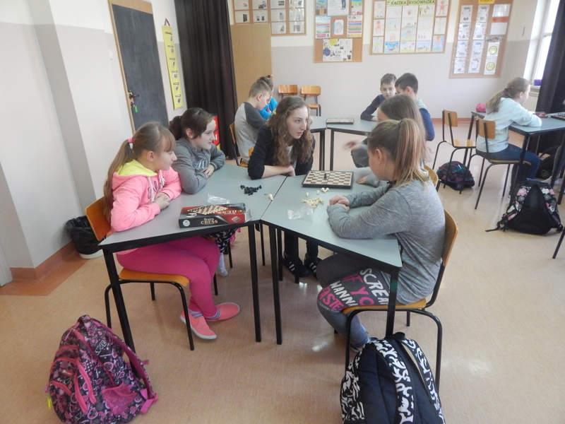W poniedziałek, 21 listopada odwiedziły naszą szkołę absolwentki Karolina Sztylka i Weronika Korczyńska- obecnie uczennice gimnazjum. Dziewczęta wystąpiły w roli ekspertów ucząc gry w szachy. Tą umiejętnością próbowały zainteresować dzieci z oddziału przedszkolnego i czwartoklasistów. Nasi uczniowie z wielką uwagą i zaangażowaniem uczestniczyli w spotkaniu z dziewczętami, a wielu z nich udało się zapamiętać podstawowe zasady gry, co staje się coraz częściej widoczne podczas zajęć świetlicowych.