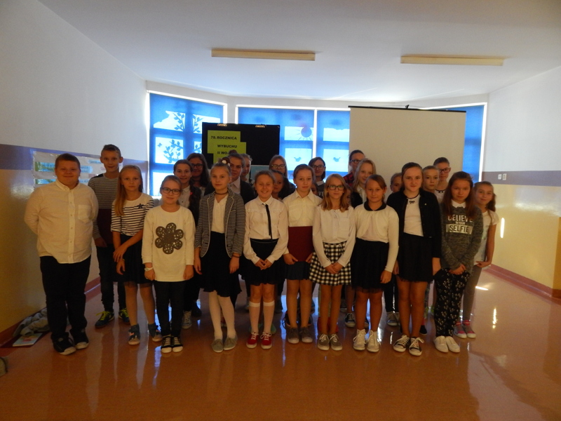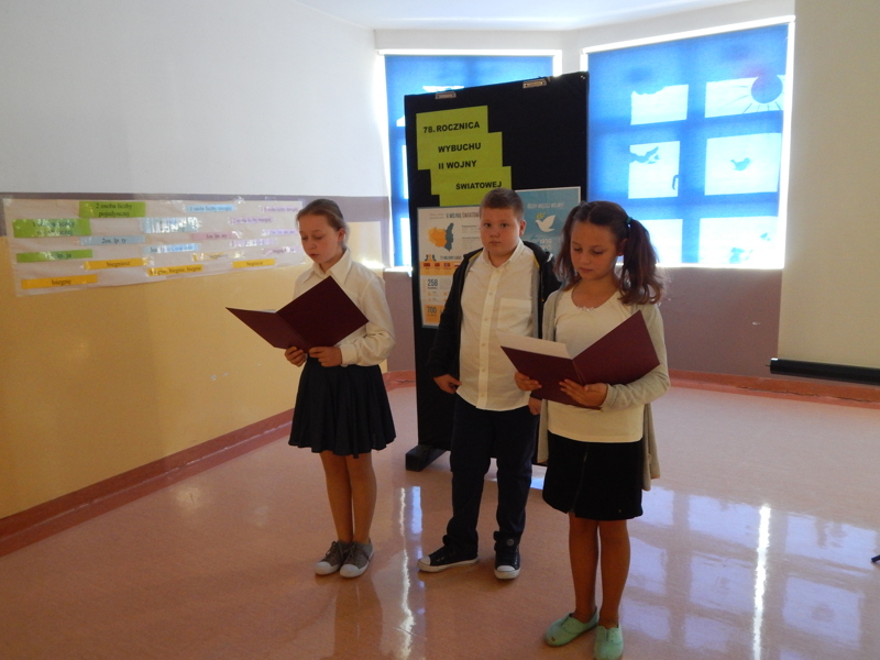Dnia 19.09.2017 r. odbył się apel upamiętniający tragiczne wydarzenia sprzed 78 lat. Społeczność uczniowska obejrzała montaż słowno-muzyczny, któremu towarzyszyła prezentacja filmu na temat II wojny światowej. Ta nietypowa lekcja historii uświadomiła dzieciom i młodzieży okrucieństwa czasów okupacji. Przypomniała również, że szansę ocalenia ma bowiem tylko to, co żyje w pamięci ludzi i narodów. Akademia została przygotowana pod kierunkiem p. Magdaleny Misztal, p. Justyny Sztorch oraz p. Arlety Lis.