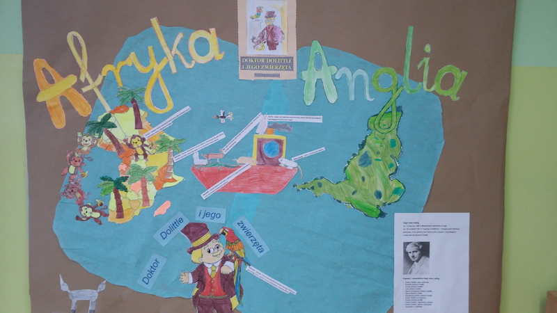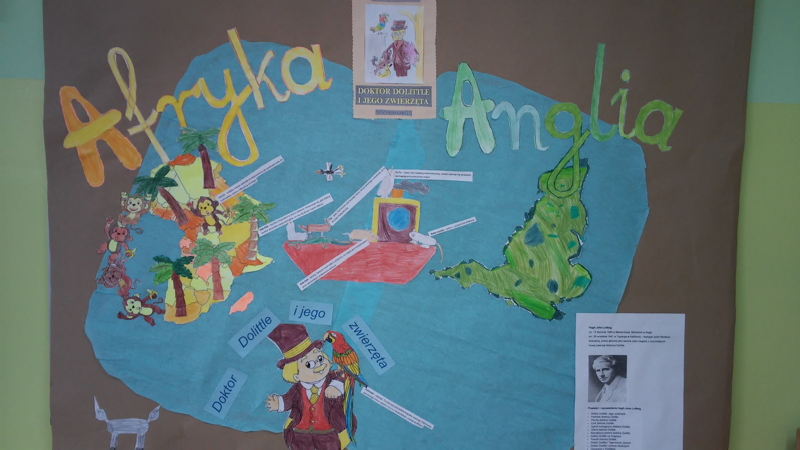 Podczas zajęć uczniowie klasy II wykazali się znajomością twórczości brytyjskiego pisarza Hugh Lofting oraz przygód doktora Dolittle opiekującego się zwierzętami i rozumiejącego ich mowę. Efekty swojej pracy dzieci uwieczniły na plakacie.