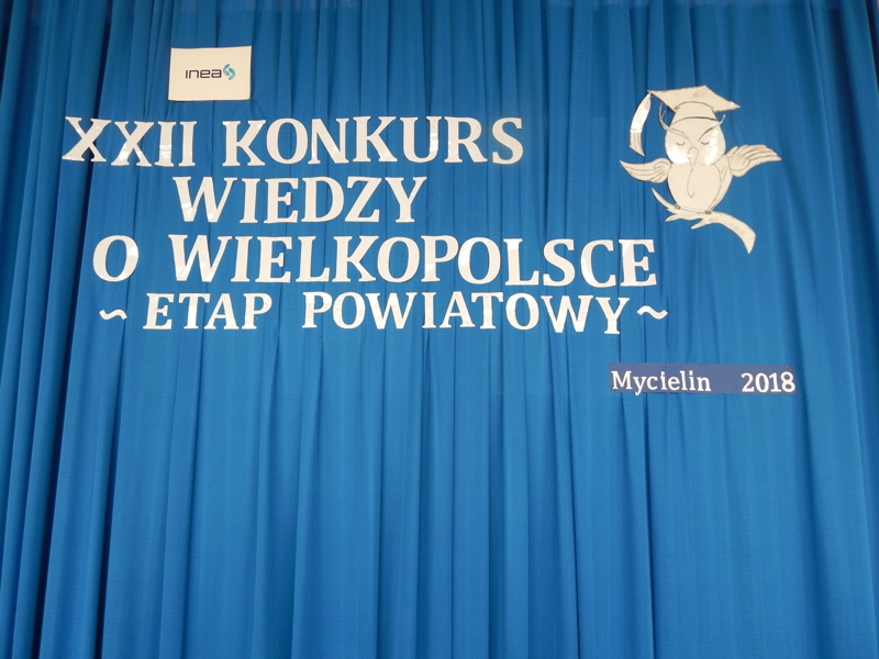 Wczoraj w naszej szkole odbył się powiatowy etap Inea XXII Konkursu Wiedzy o Wielkopolsce. Mieliśmy zaszczyt gościć u siebie uczniów i nauczycieli z 12 szkół powiatu kaliskiego. Naszą szkołę reprezentowały uczennice: Aleksandra Pacholska i Maja Ślusarczyk z klasy IV oraz Wiktoria Kabacik i Patrycja Przybylska z klasy V. Dziewczęta niemal od września przygotowywały się do udziału w konkursie pod opieką pani Beaty Kowalczyk. Nad przebiegiem całości czuwała pani dyrektor Małgorzata Tomela. Życzenia powodzenia podczas konkursu złożyła uczestnikom obecna pani Aleksandra Filipowicz - Sekretarz Gminy Mycielin. Ze względu na konkursową tremę atmosfera wśród uczestników była odrobinę napięta. Mamy jednak nadzieję, że wszystkim podobała się nasza szkoła, a krótki pobyt w jej murach pozostanie miłym wspomnieniem.