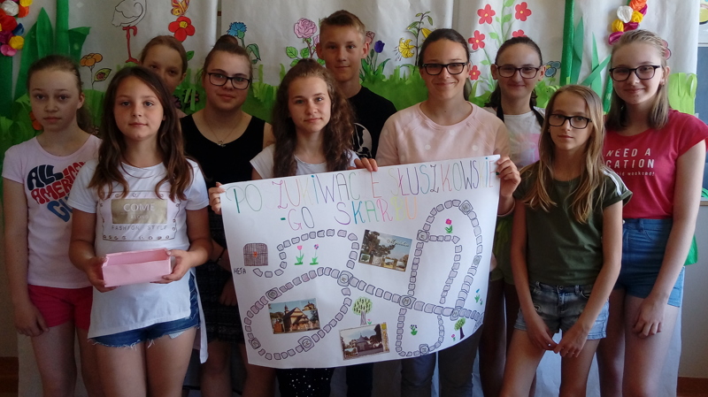 Przed długim weekendem tytusowa drużyna wykonała ostatnie działanie w trzyetapowym konkursie historycznym. Uczniowie naszej placówki stworzyli grę planszową dotycząca historii gminy Mycielin, ze szczególnym zwróceniem uwagi na znalezisko słuszkowskiego skarbu. Dzięki tej inicjatywie zaprosili swych kolegów i koleżanki do odkrywania ciekawostek z naszego regionu. Gra ,,Poszukiwacze słuszkowskiego skarbu’’ stała się interesującą pomocą dydaktyczną podczas zajęć z historii. Podczas trwania Konkursu ,,Tytus’’ promowaliśmy istotne wydarzenia z dziejów Wielkopolski, takie jak: Polski Sejm Dzielnicowy, Powstanie Wielkopolskie oraz koleje losu Gminy Mycielin.