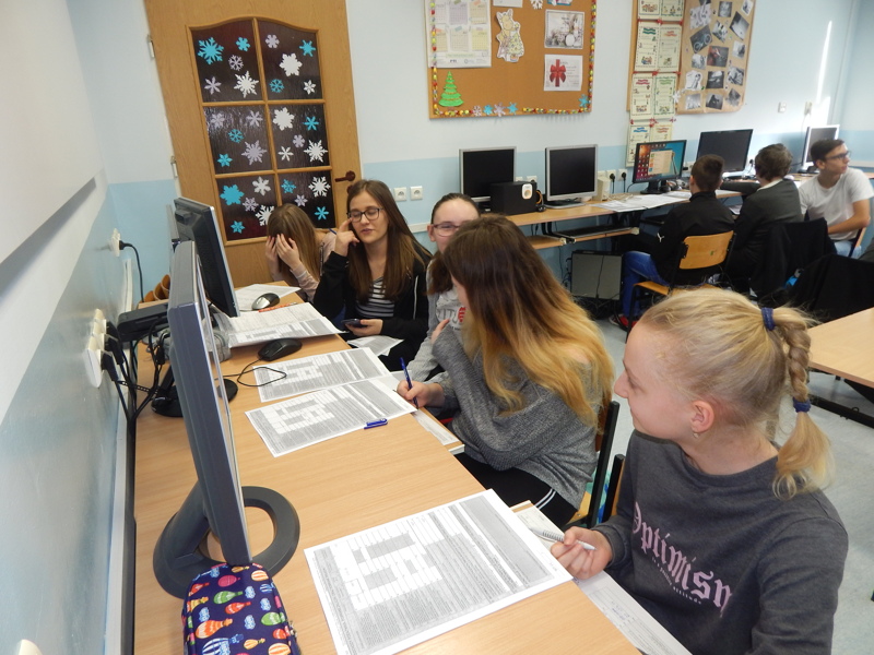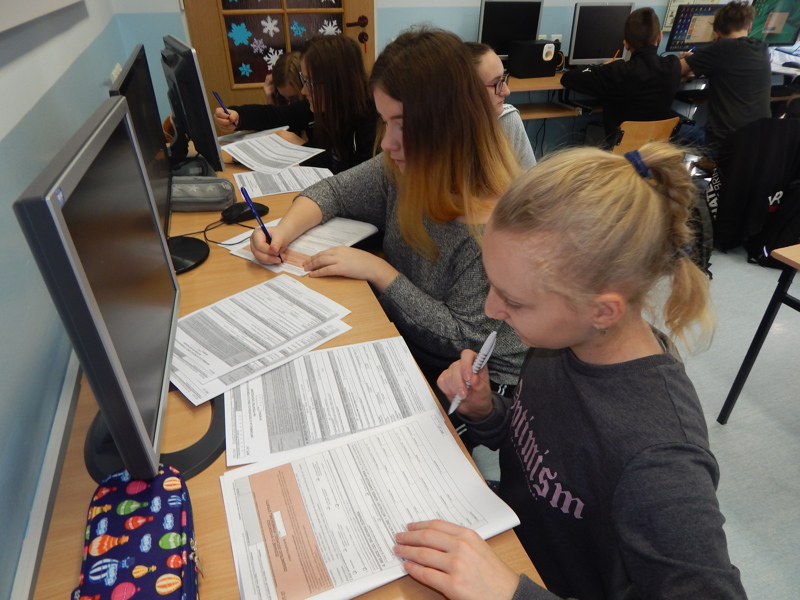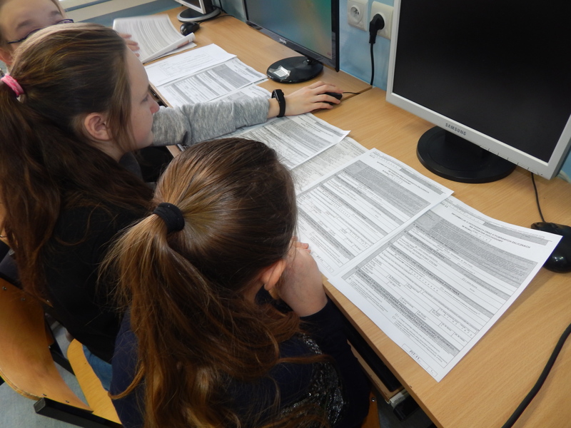 Co oznaczają te tajemnicze skróty i terminy mogli dowiedzieć się uczniowie podczas zajęć odbywających się w ramach projektu mPotęga. Zajęcia prowadziła pani Iwona Wasik - mama ucznia klasy VII Miłosza Wasika, pracująca w Urzędzie Skarbowym w Kaliszu. Uczniowie zapoznali się z możliwościami wypełniania druku on line. Poza teorią najważniejsze na zajęciach było praktyczne dokonanie rozliczenia na odpowiednim formularzu PIT 37. Pod czujnym okiem pani Wasik udało się wszystkim uczniom wzorowo wypełnić zeznanie podatkowe. Po raz pierwszy uczniowie ucieszyli się z zadanej ”pracy domowej”: mianowicie mają spróbować wypełnić PIT dla swoich rodziców.