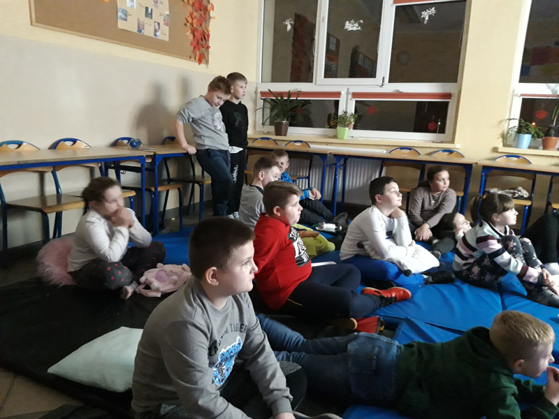 W miniony piątek- 4 stycznia 2019 r. uczniowie klasy IV ze Szkoły Podstawowej w Korzeniewie spotkali się ze swoimi rówieśnikami ze Szkoły Podstawowej w Mycielinie. Podczas wieczorku filmowego obejrzeli wspólnie film „Sing”. Nie zabrakło również czasu na gry integracyjne oraz wspólny posiłek. Spotkanie, które odbyło się w budynku SP w Korzeniewie, zainicjowała wychowawczyni korzeniewskich czwartaków- p. Agnieszka Matuszewska.