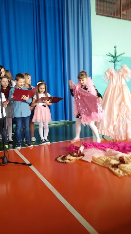 Wyrazem pamięci, szacunku i wdzięczności dla naszych Pań i Dziewczyn były kwiaty, wiersze i piosenki przygotowane przez szkolnych artystów pod kierunkiem nauczycieli B. Kozigórskiej, A. Lis i R. Wawrzyniaka.