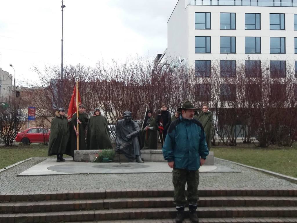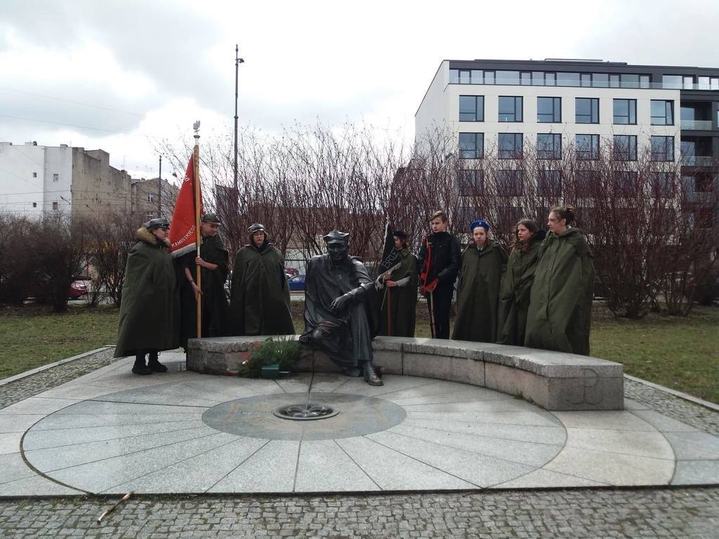 W sobotę 16 marca nasi harcerze uczciły rocznicę śmierci patrona naszego hufca - Aleksandra Kamińskiego. W tym celu, wraz z druhem komendantem Jackiem Kamińskim i harcerzami z powiatu kaliskiego, udaliśmy się do Łodzi, miasta w którym Aleksander Kamiński spędził kilkanaście lat swojego życia. Pobyt w Łodzi rozpoczął się uroczystym apelem przy pomniku Aleksandra Kamińskiego. Wysłuchaliśmy tam przemówienia druha Jacka, złożyliśmy też kwiaty i zapaliliśmy znicze. Odbyliśmy również krótki spacer po ulicy Piotrkowskiej oraz wysłuchaliśmy opowieści o życiu i działalności naszego patrona.