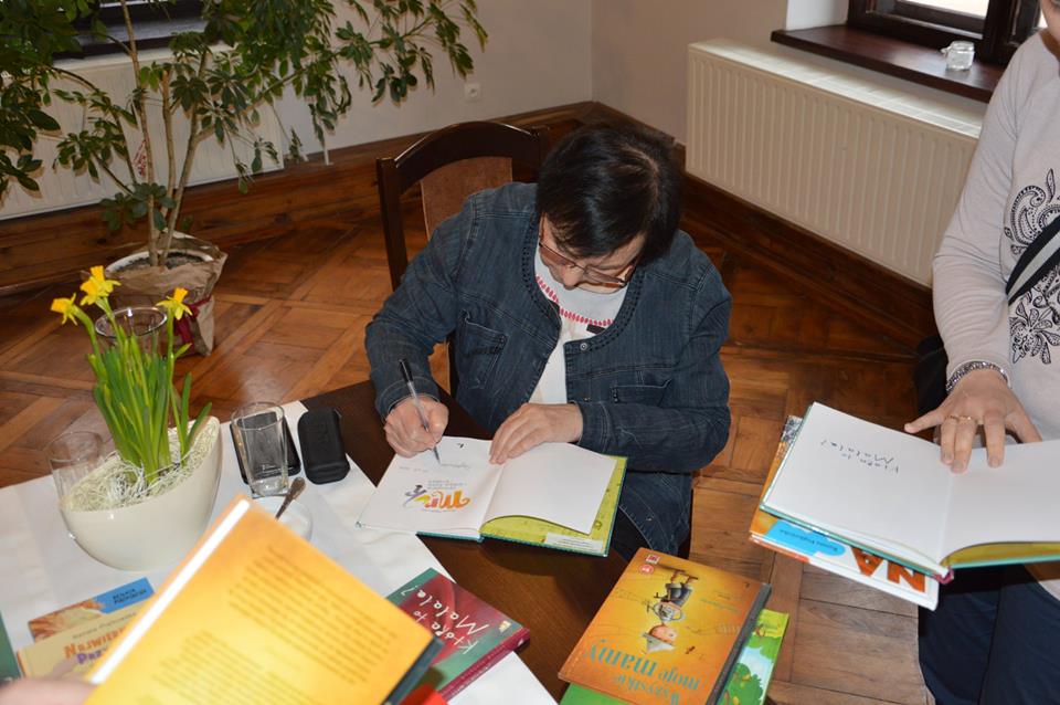 5 marca uczniowie klasy VII naszej szkoły wzięli udział w spotkaniu z autorką książek dla dzieci i młodzieży Renatą Piątkowską oraz z lektorem Malwiną Kożurno. Tematem spotkania autorskiego była książka pt. „Wszystkie moje mamy” oraz działalność niezwykłej kobiety Ireny Sendlerowej. Nasi uczniowie dowiedzieli się, jak wyglądało życie w getcie oraz poszerzyli wiedzę dotyczącą losów wspaniałej, odważnej Ireny Sendlerowej, która narażając własne życie uratowała od śmierci 2,5 tys. dzieci. Po spotkaniu autorka złożyła autografy na wszystkich swoich książkach, jakie mamy w szkolnej bibliotece, również na książce, której dotyczyło spotkanie. To bezcenna pamiątka tego wydarzenia. Zapraszamy do wypożyczania i życzymy miłej lektury!