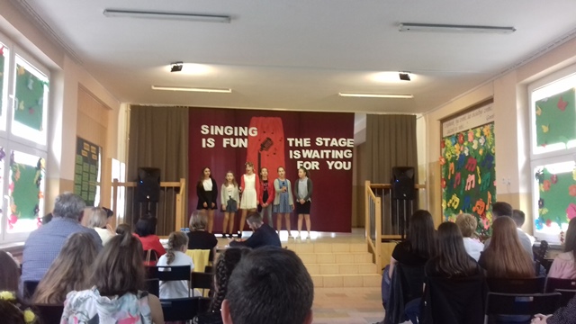 20 maja zespół wokalny złożony z sześciu uczennic klasy V reprezentował naszą szkołę podczas Międzyszkolnego Festiwalu Piosenki Angielskiej „Singing is fun”, który odbył się w Szkole Podstawowej w Rychwale. Dziewczyny były najliczniejszym zespołem w kategorii klas IV – VI i pięknie zaprezentowały się w piosence Equestia Girls „Shine Like Rainbows”.