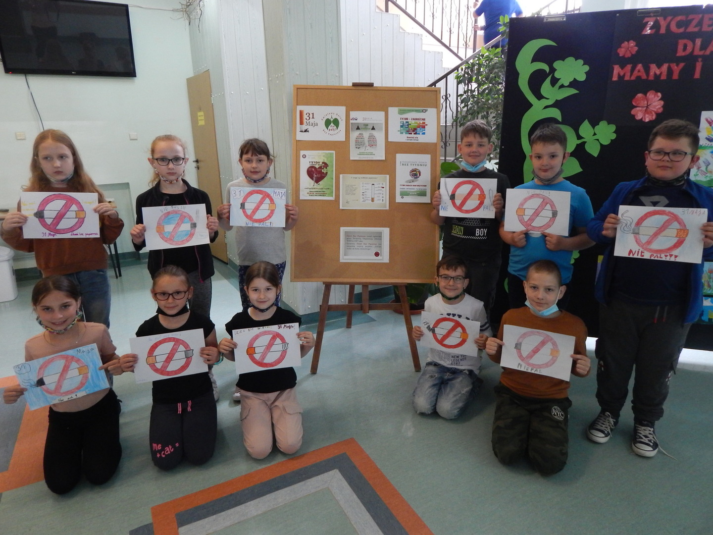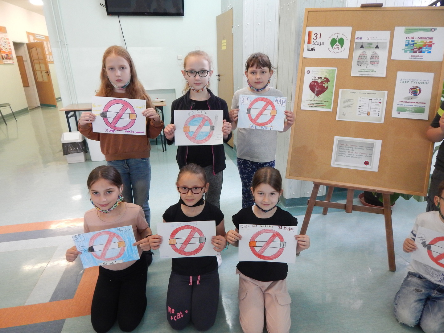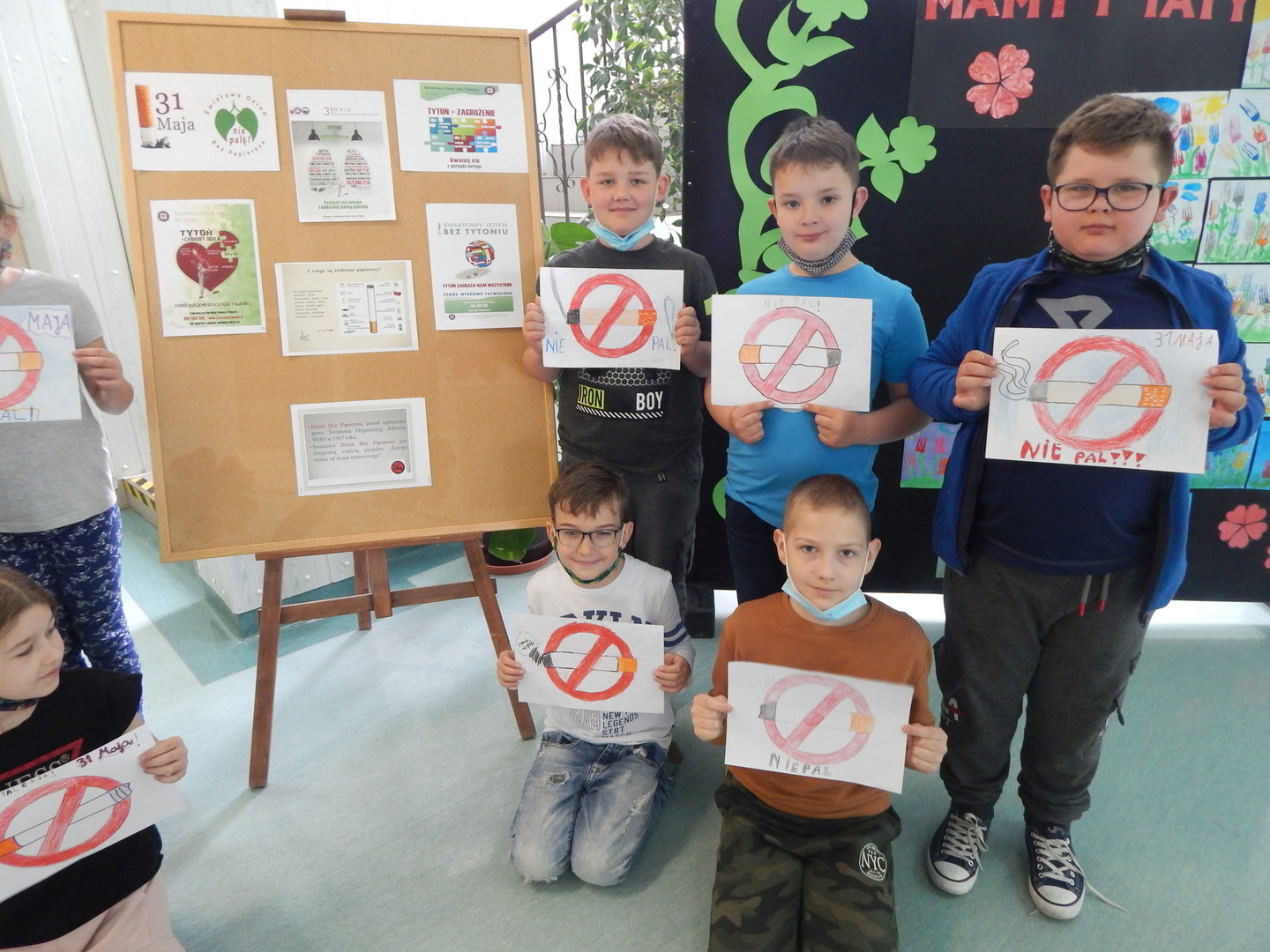 Uczniowie klasy III podsumowali swoje spotkania dotyczące realizacji programu "Nie pal przy mnie, proszę". W ramach tego projektu wiele miejsca poświęcili na omóweinie zagrożeń płynących z palenia tytoniu. Ich spotkanie podsumowujące i wykonane z tej okazji prace plastyczne wpisały się w nadchodzący termin Światowego Dnia Bez Tytoniu.