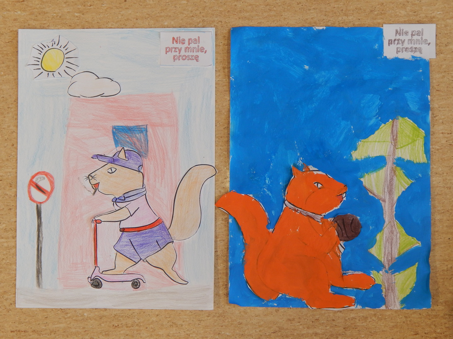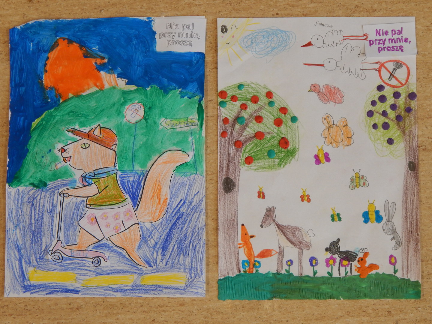 Uczniowie klasy I pod czujnym okiem swojej wychowawczyni na zajęciach realizowali projekt "Nie pal przy mnie, proszę" Celem głównym tych zajęć było uświadomienie, że palenie tytoniu jest szkodliwe dla zdrowia. Na zajęciach dzieci zapoznały się z wiewiórką "Wiki" i "Wiewiórem", którzy promowali zdrowy tryb życia (co i dlaczego szkodzi zdrowiu?, od czego zależy nasze zdrowie?). W efekcie przeprowadzonych zajęć powstały barwne plakaty wykonane przez uczniów, które mamy przyjemność zaprezentować.