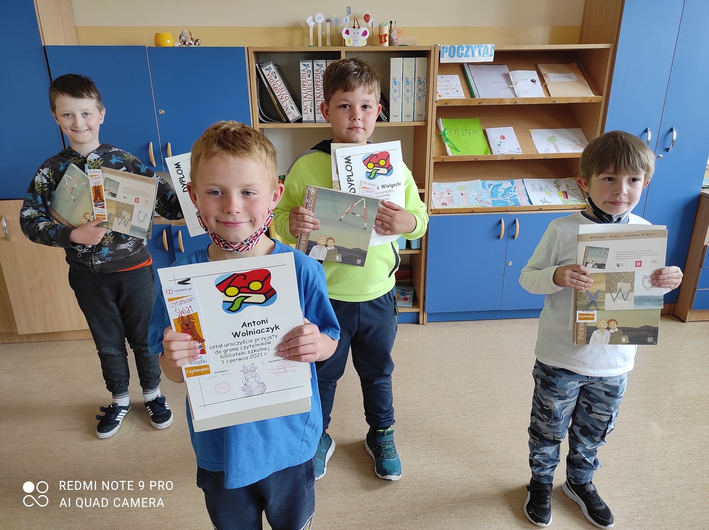 Ogólnopolski Tydzień Głośnego Czytania Dzieciom stał się idealną okazją, aby do grona czytelników szkoły oficjalnie dołączyli uczniowie pierwszej klasy. I tak właśnie stało się 1 czerwca. Zanim każdy pierwszoklasista stał się prawdziwym czytelnikiem, musiał wykazać się znajomością regulaminu biblioteki dla najmłodszych, bajek, baśni i wierszy dla dzieci. Dodatkowo okazało się, że dzieci bardzo dobrze wiedzą, czym różni się biblioteka od czytelni, księgarni, drukarni oraz od domowej biblioteczki. Każde dziecko doskonale sprawdziło się w tej dziedzinie wiedzy. Zwieńczeniem spotkania było złożenie uroczystej przysięgi i zapewnienie o przyjaźni z książką. Nie obyło się również bez miłych niespodzianek i upominków. Każde dziecko otrzymało pamiątkowy dyplom, zakładkę do książek oraz Wyprawkę Czytelniczą dla Pierwszoklasisty ufundowaną w ramach projektu "Mała książka - wielki człowiek". Projekt ten realizowany jest ze środków Ministerstwa Kultury i Dziedzictwa Narodowego, pod honorowym patronatem Ministerstwa Edukacji Narodowej oraz Rzecznika Praw Dziecka. Najwięcej radości sprawił "Kreatywny alfabet", który od razu poruszył lawinę pomysłów do wykonania. Mamy ogromną nadzieję, że to początek prawdziwej i długiej przygody z książką.