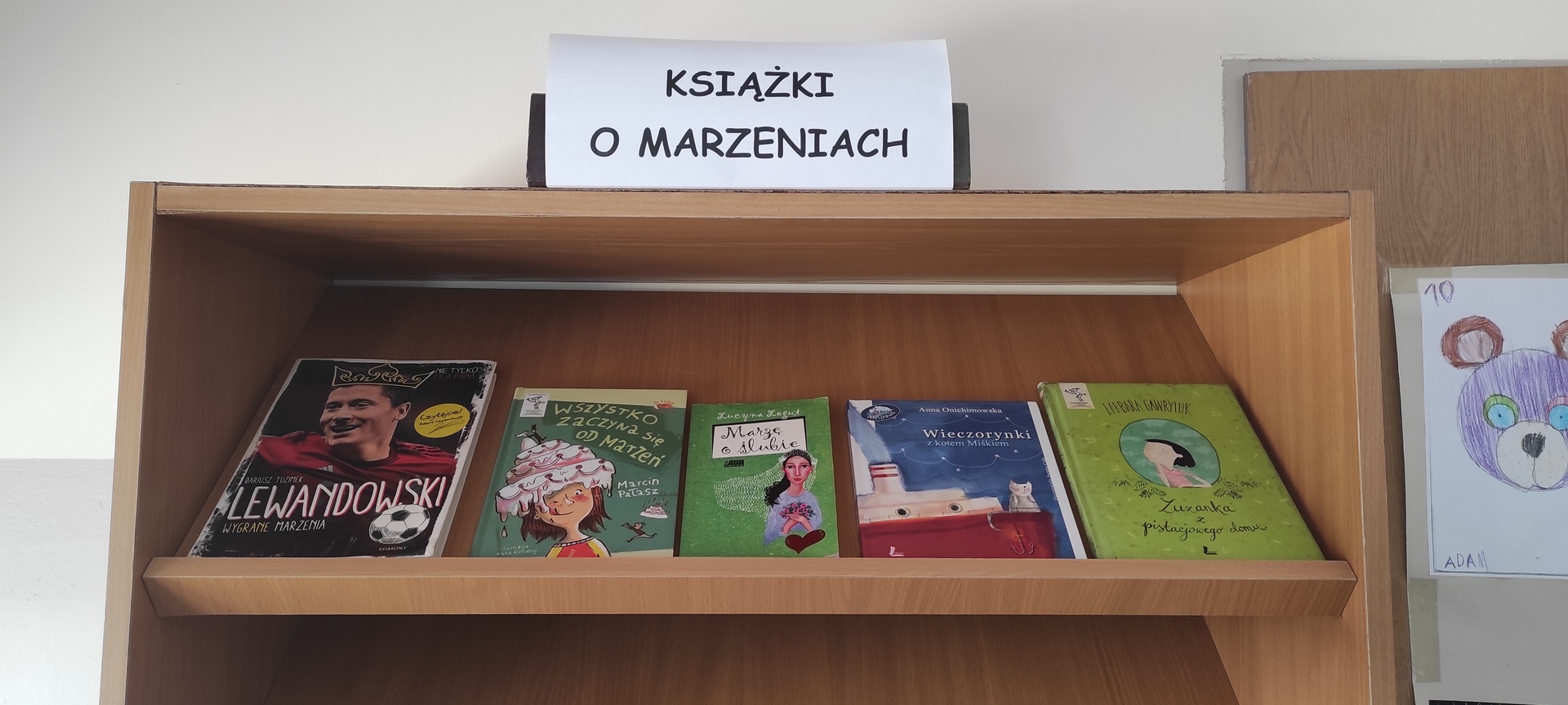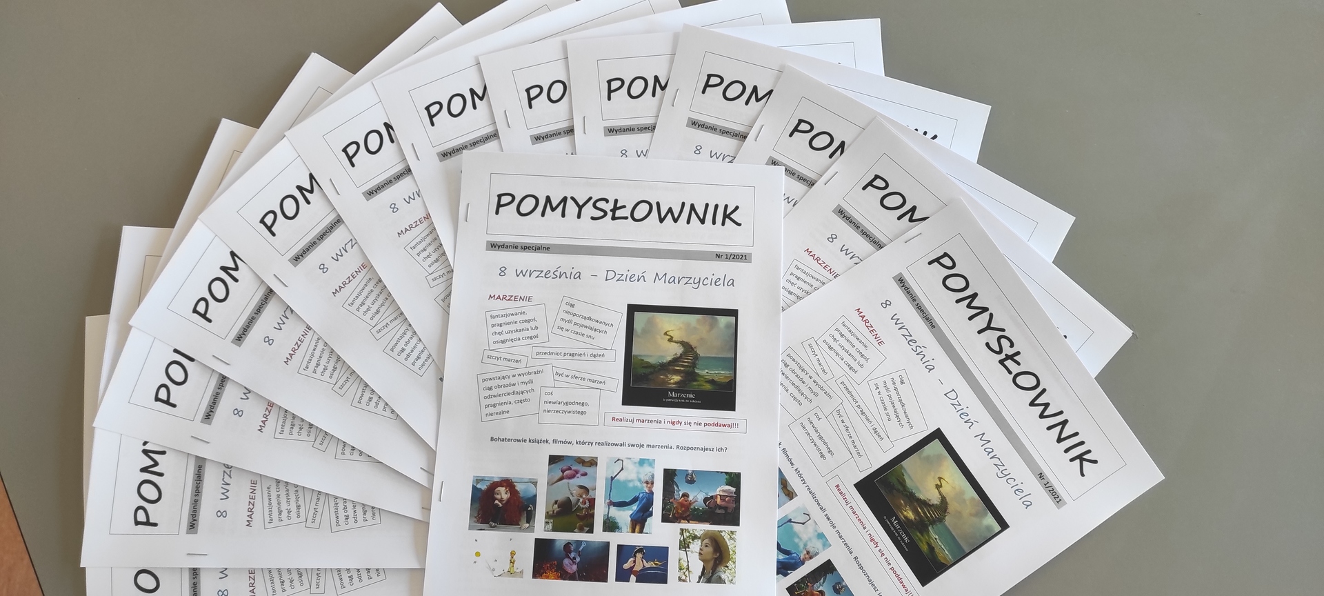 Z inicjatywy pani Magdaleny Misztal i zespołu redakcyjnego naszego szkolnego "Pomysłownika" mogliśmy ubarwić życie szkolne naszymi marzeniami. Starsi uczniowie wypisali je, a najmłodsi - pięknie wyrysowali. Dzięki temu powstała barwna wystawka. Z okazji Dnia Marzyciela ukazał się również specjalny numer "Pomysłownika", a w nim między innmi konkurs dla uczniów, w którym mieli możliwość odgadnąć, o czym marzą pracownicy naszej szkoły. Całości towarzyszyła wystawka książek o marzeniach przygotowana przez bibliotekarkę szkolną.