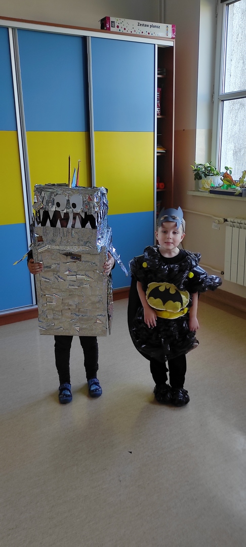 Chłopcy z oddziału przedszkolnego: Szymon Przekowiak i Leon Sztorch zwyciężyli w szkolnym etapie konkursiu "Ekologiczny stój bajkowy". Ich ciekawe ekologiczne stroje będą reprezentowały szkołę w kolejnym etapie konkursu. Gratulujemy chłopcom i życzymy powodzenia na dalszej konkursowej drodze.