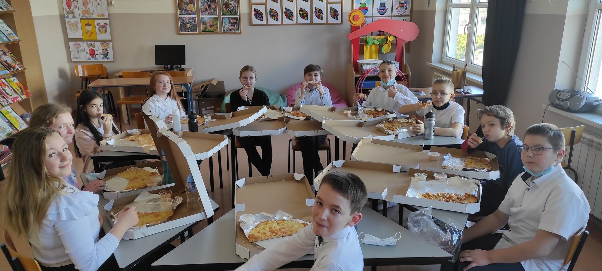 Do życzeń dołączają się nasi uczniowie ze szkolnego zespołu wokalnego "Wiolinki" oraz grupa taneczna w układzie tanecznym do piosenki pt. "Superhero". Niech dziecięca radość wyrażona piosenką i tańcem przyniesie chwilę ukojenia w tym trudnym czasie.