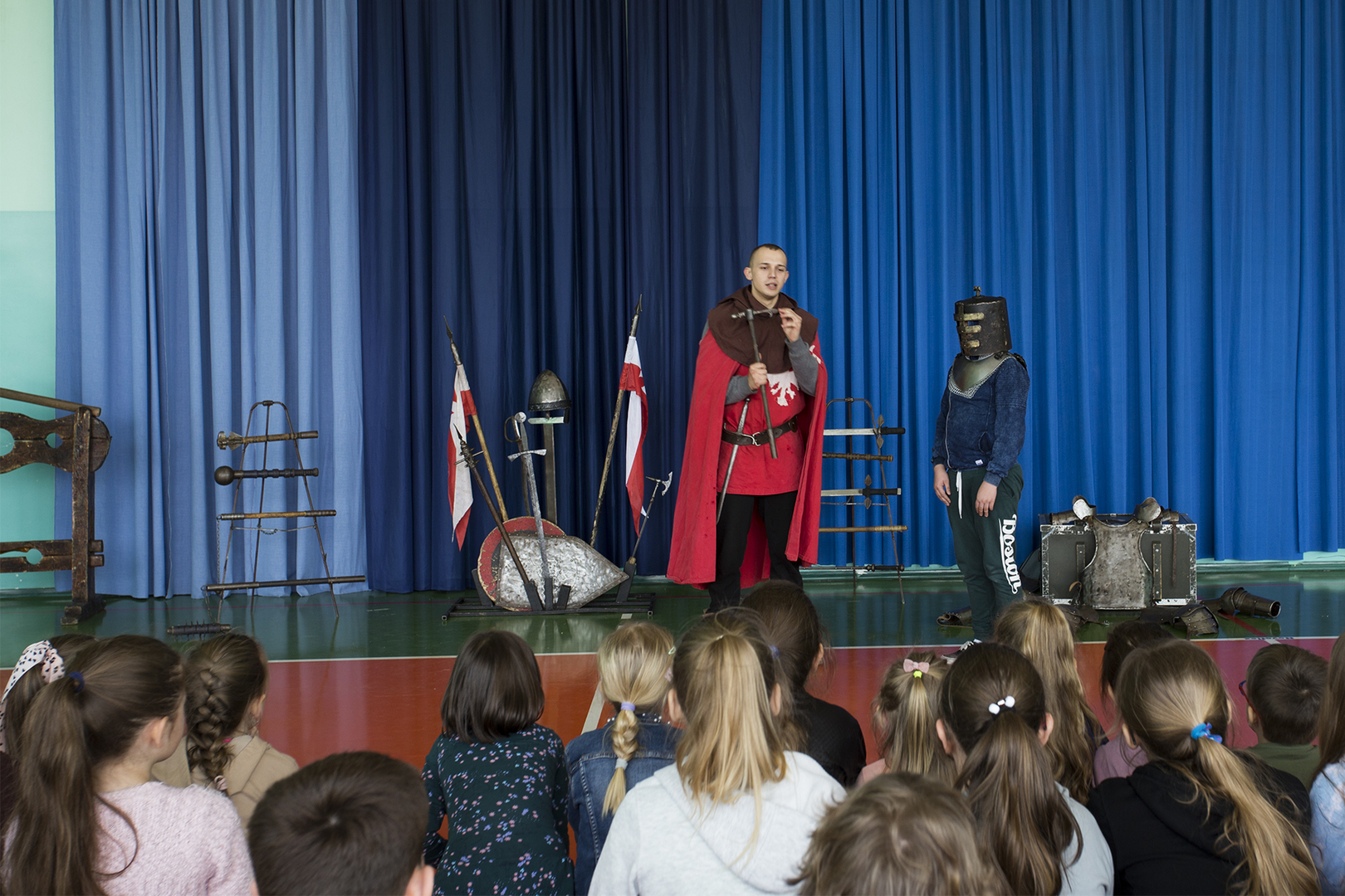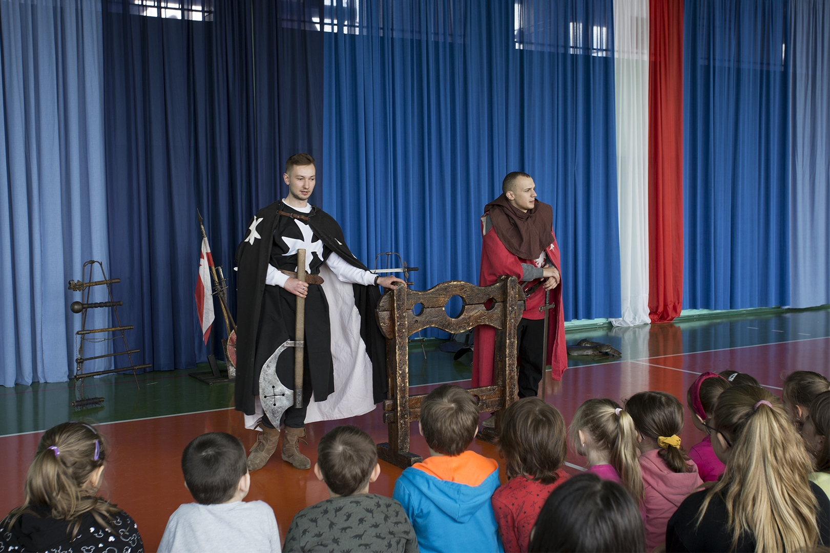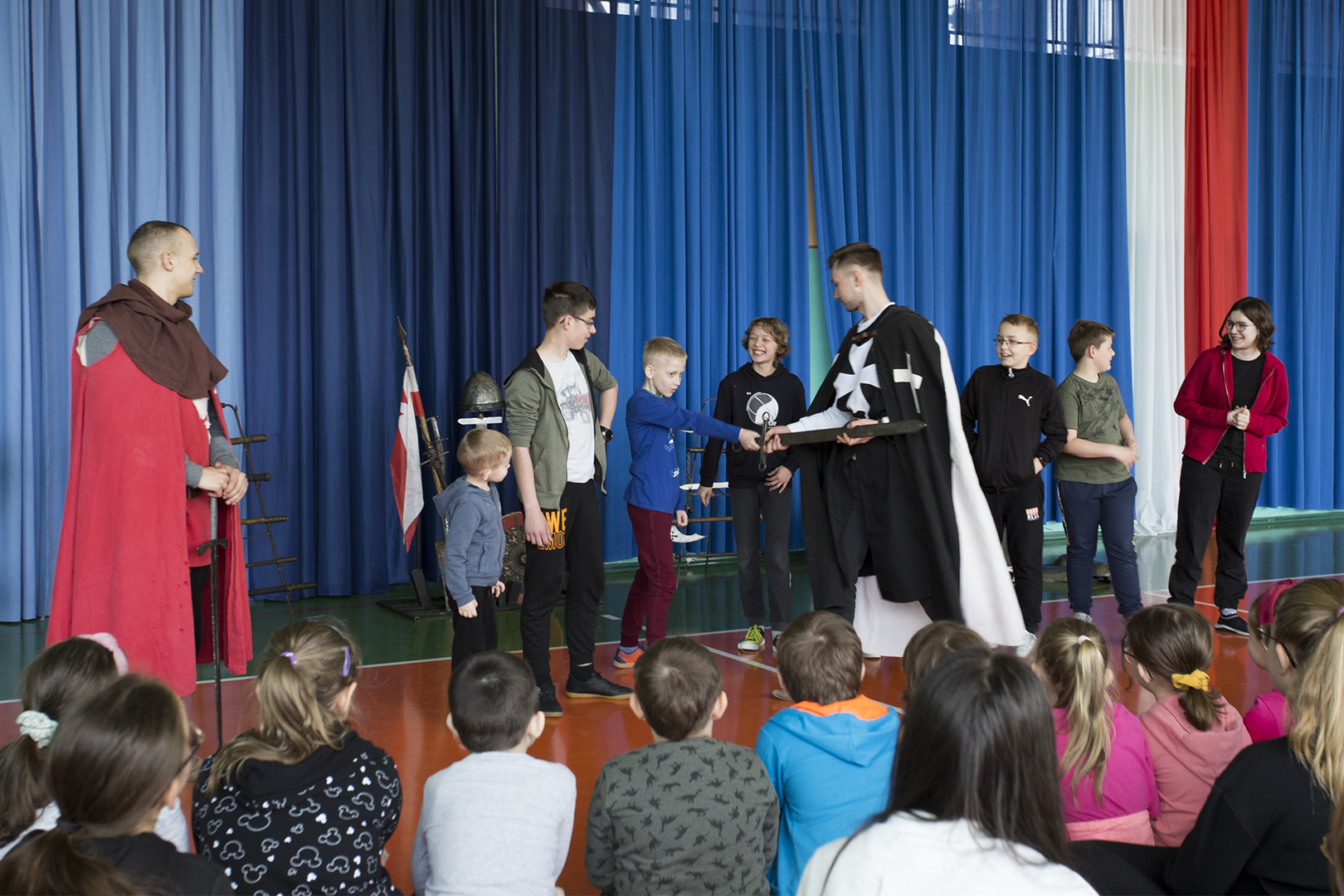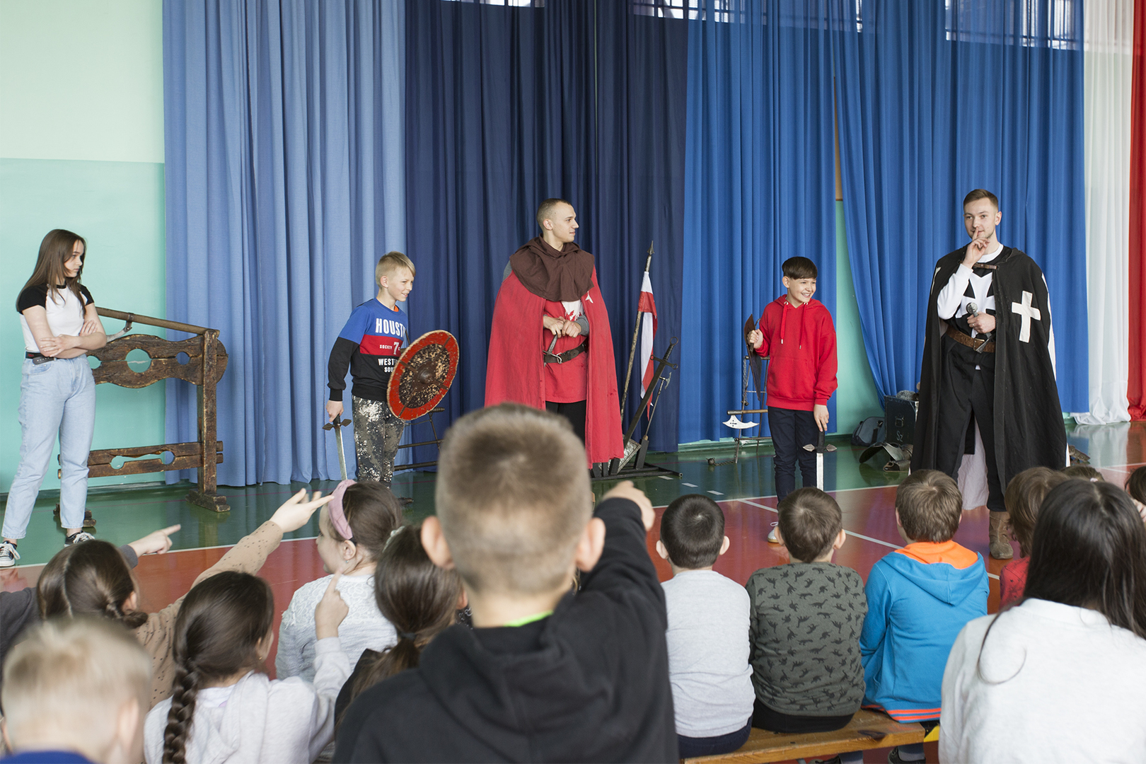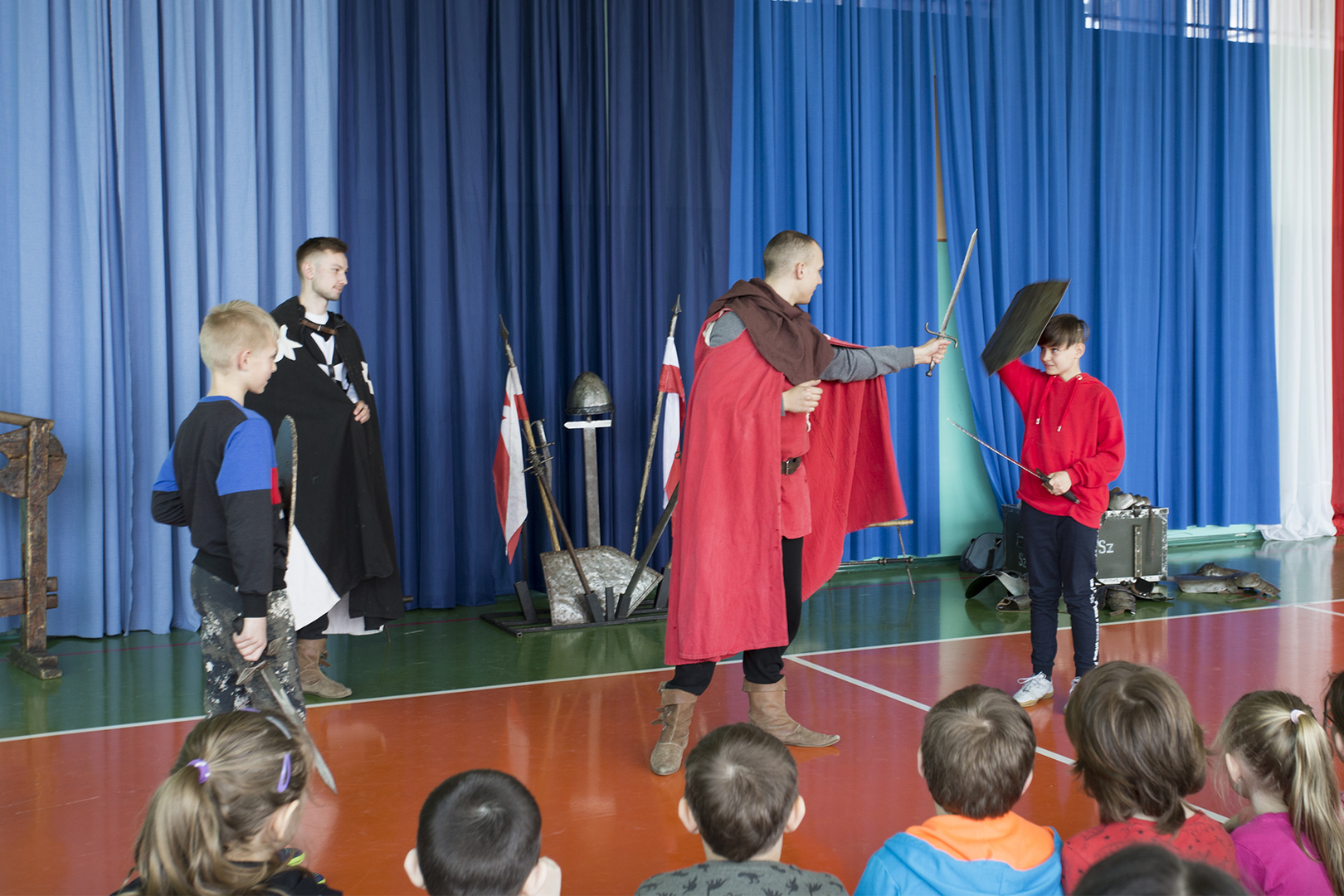 W minioną środę naszą szkołę odwiedziła grupa rekonstrukcyjna ..... Dzięki temu spotkaniu nasi uczniowie mieli okazję poznać zwyczaje średniowiecznego rycerstwa. Dowiedzieli się, jak wyglądał rycerski strój, broń i jak zabiegać o względy wybranki serca. Mogli też zobaczyć średniowieczne narzędzia kar i tortur. Po zakończonym występie każdy uczeń mógł podejść i osobiście dotknąć wszystkich rekwizytów, które zostały im wcześniej zaprezentowane. Właśnie ten moment wywołał najwięcej radości.