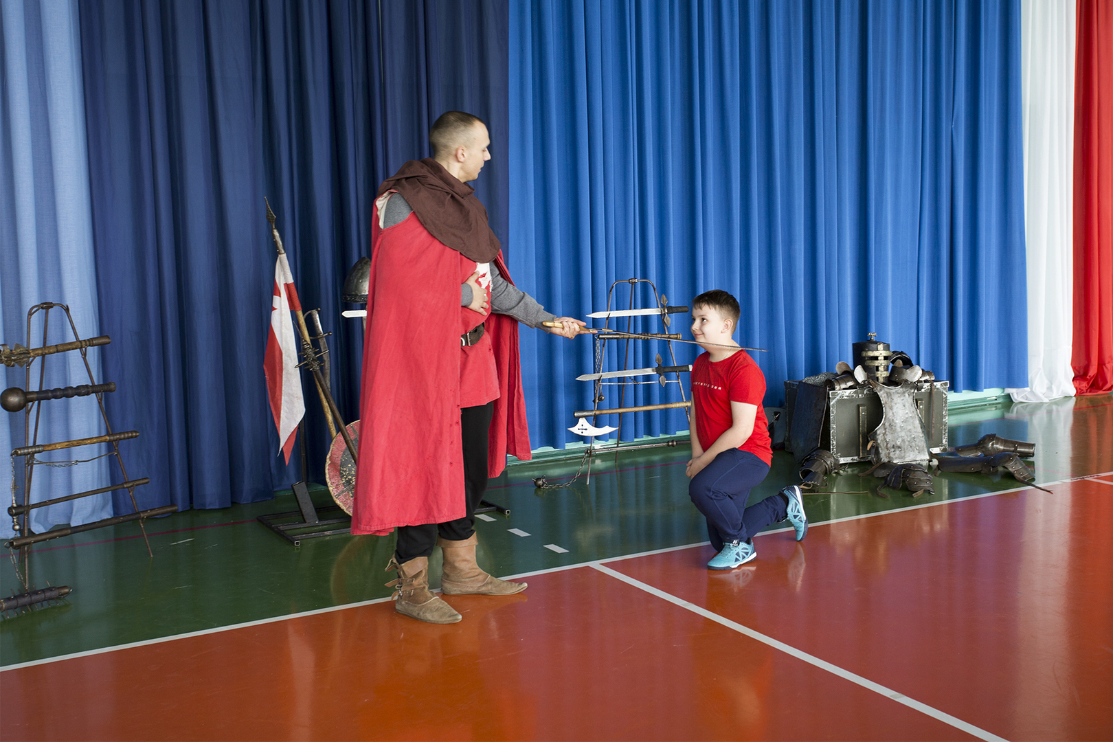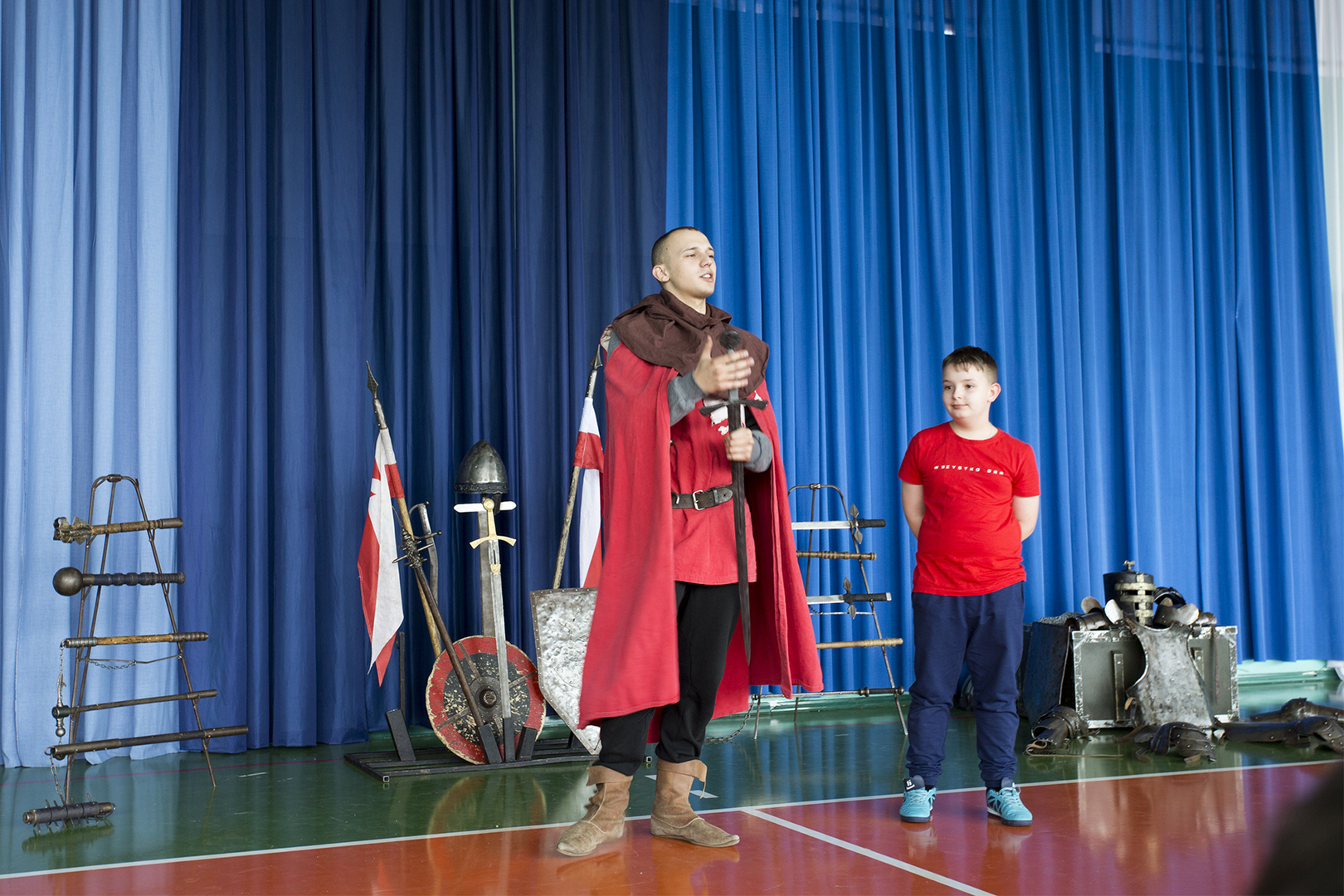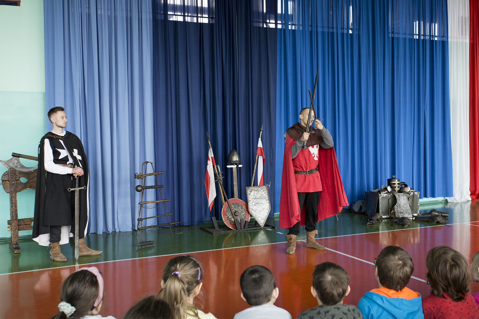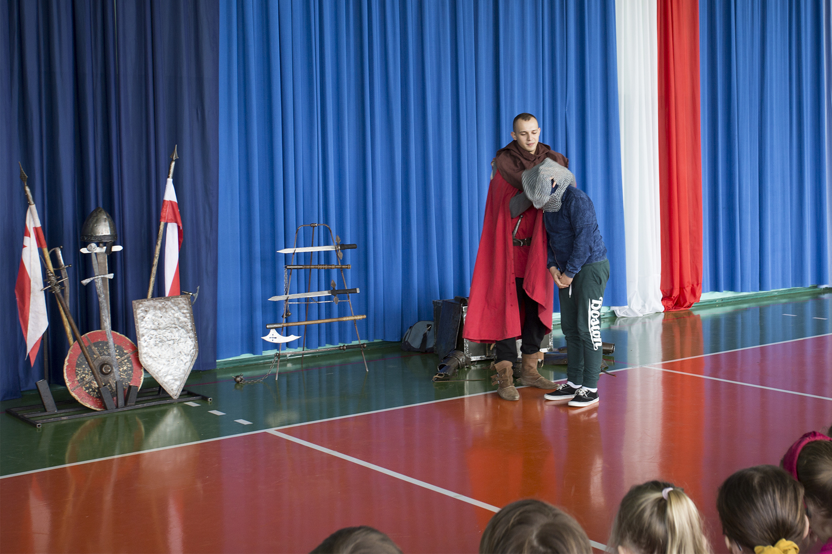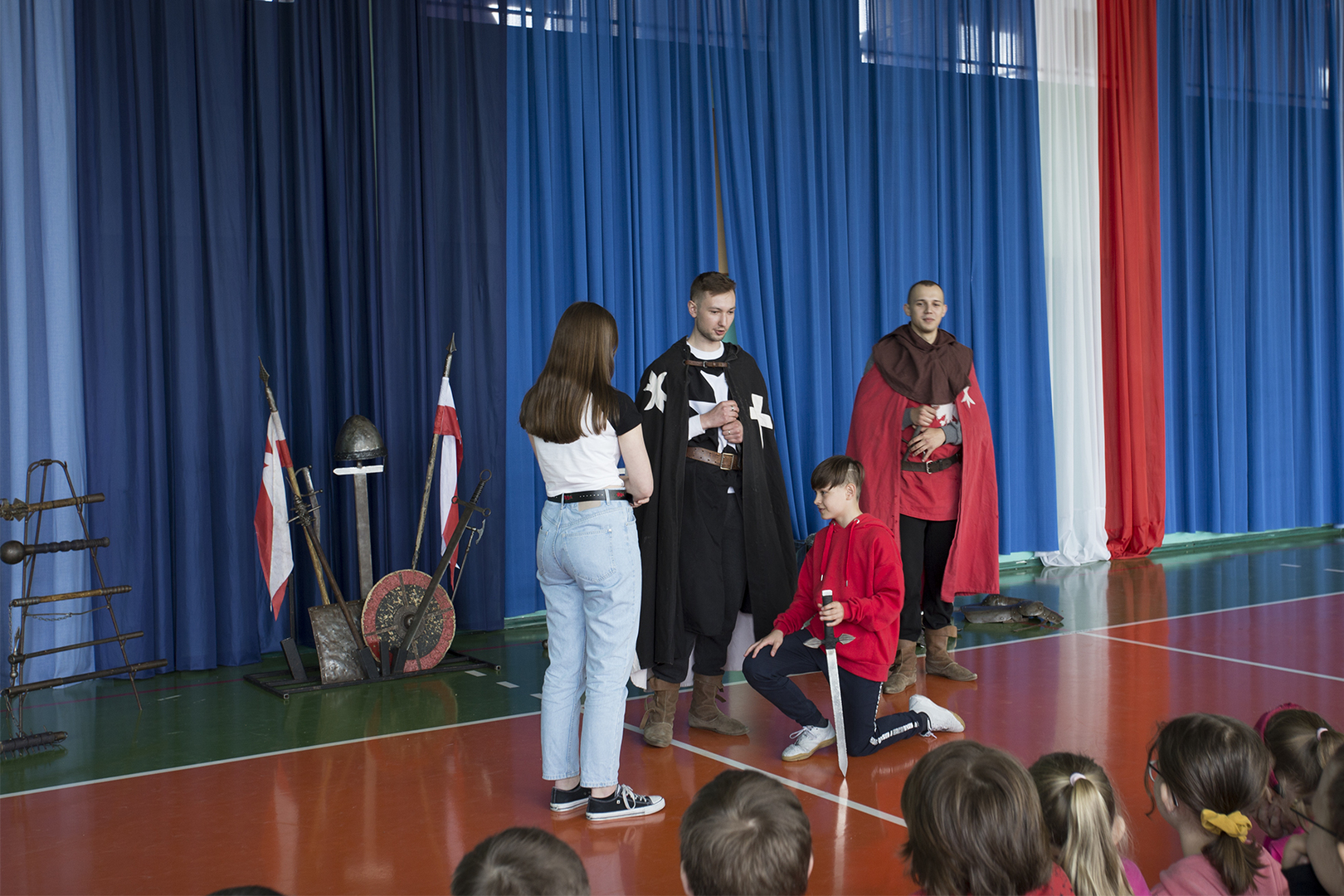 W minioną środę naszą szkołę odwiedziła grupa rekonstrukcyjna ..... Dzięki temu spotkaniu nasi uczniowie mieli okazję poznać zwyczaje średniowiecznego rycerstwa. Dowiedzieli się, jak wyglądał rycerski strój, broń i jak zabiegać o względy wybranki serca. Mogli też zobaczyć średniowieczne narzędzia kar i tortur. Po zakończonym występie każdy uczeń mógł podejść i osobiście dotknąć wszystkich rekwizytów, które zostały im wcześniej zaprezentowane. Właśnie ten moment wywołał najwięcej radości.