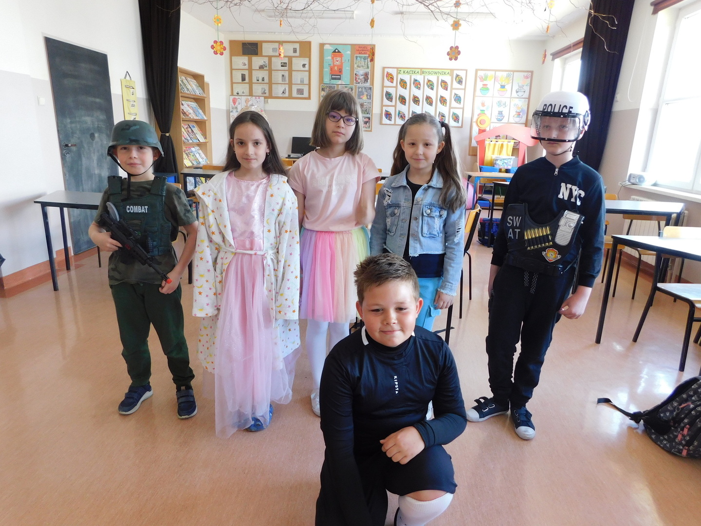 Z inicjatywy Samorządu Uczniowskiego zagościły u nas w szkole postacie z bajek i baśni, zwierzęta, piosenkarki i piosenkarze… Wyobraźnia dopisała uczniom i na przerwach można było podziwiać różnorodność przebrań.
