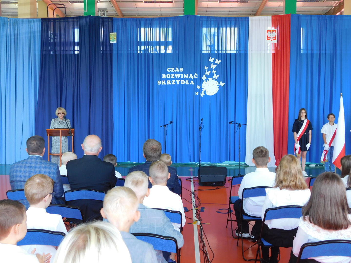 Wczoraj o godzinie 10.40 rozbrzmiał w naszej szkole pierwszy dzwonek roku szkolnego 2022/2023. Wszystkich zgromadzonych na uroczystości powitała pełniąca obowiązki dyrektora szkoły Pani Małgorzata Kraszkiewicz, która przekazała także niezbędne informacje dotyczące przebiegu roku szkolnego. Nie zabrakło zaproszonych gości oraz licznie zebranych rodziców. Blasku uroczystości dodał występ szkolnego zespołu wokalnego Wiolinki przygotowanego przez Panią Arletę Lis.