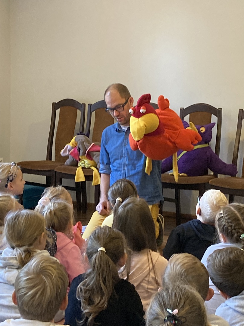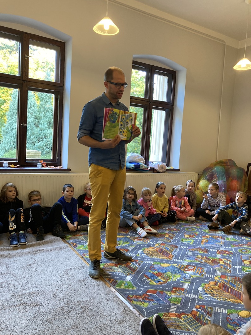 W środę 5 października uczniowie klasy I i II uczestniczyli w spotkaniu z Panem Poetą, które odbyło się w Bibliotece Publicznej Gminy Mycielin. Dzieciom bardzo podobały się zabawy przygotowane przez Pana Poetę na to spotkanie, ale przede wszystkim zachwyciły się piękną recytacją autorskich wierszy.