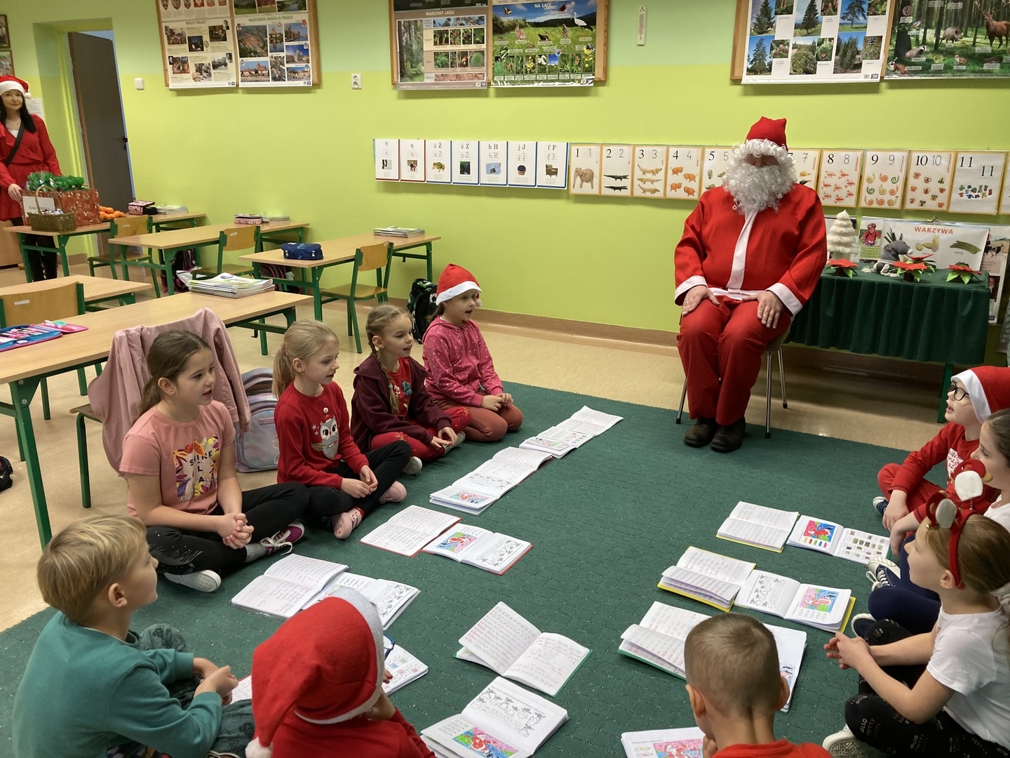 Dzisiaj odwiedził naszą szkołę Mikołaj. Zawitał do pierwszej klasy i oddziału przedszkolnego.