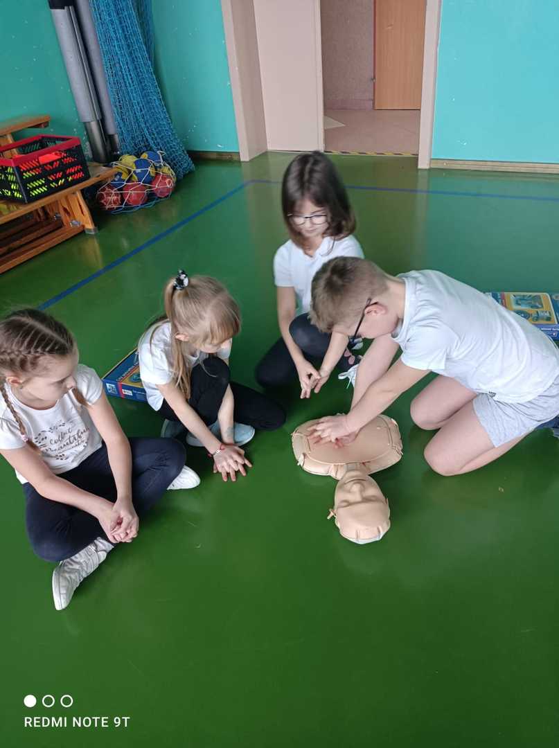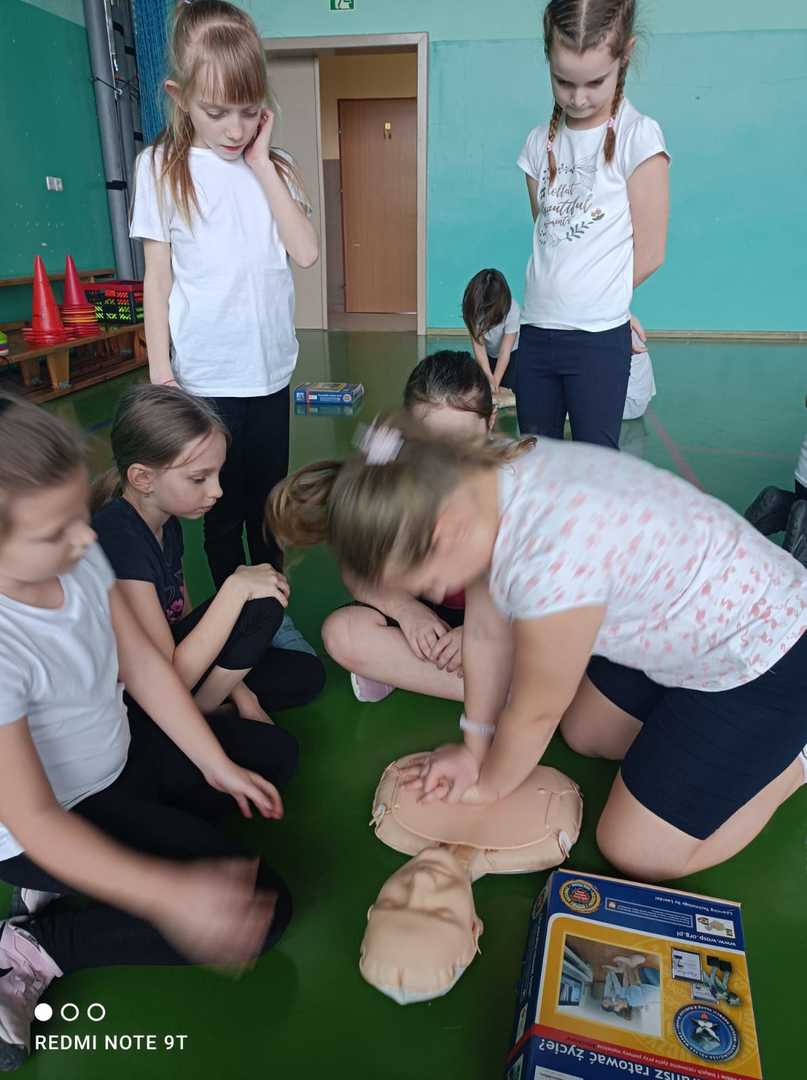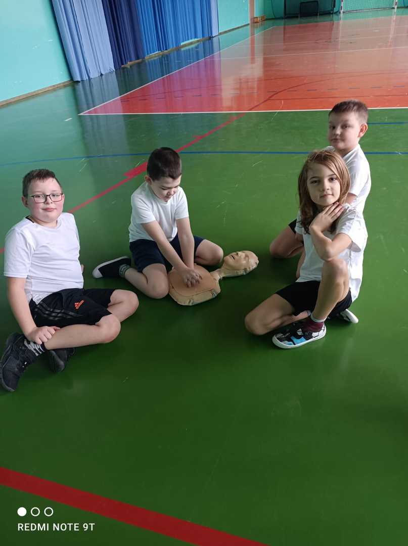 Uczniowie klasy II pod czujnym okiem p. Zofii Waszak ćwiczyli podczas zajęć udzielanie pierszej pomocy.