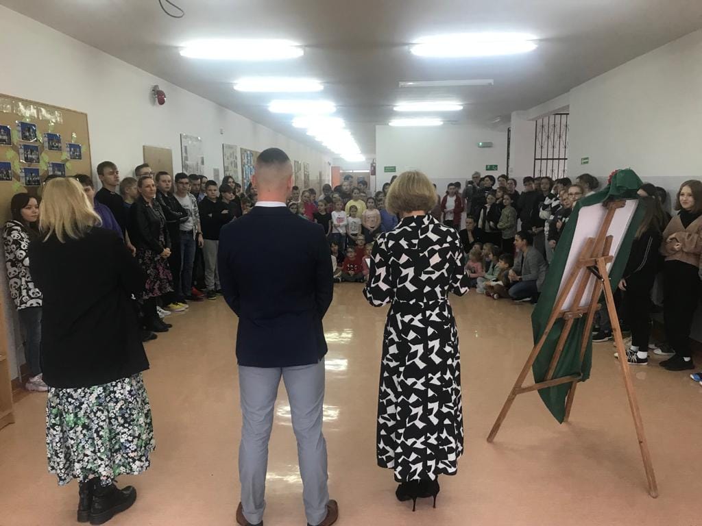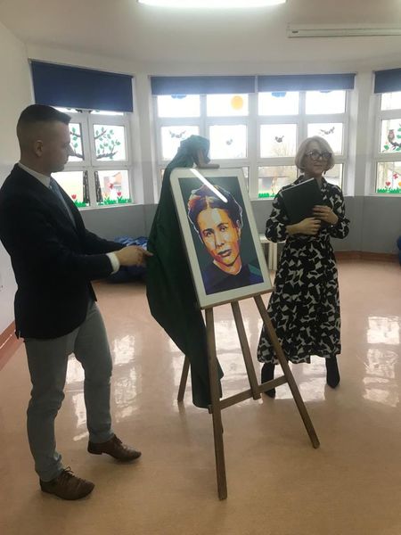 17.02.2023r. w naszej placówce odbyło się doniosłe wydarzenie. Naszą szkołę odwiedził kaliski artysta Jakub Multan ,który wykonał metodą wektorową grafikę naszej Patronki- Ireny Sendlerowej. Tym bardziej jesteśmy wdzięczni ponieważ p.Jakub Multan podarował nam tę pracę i w obecności całej społeczności szkolnej wraz z Panią Dyrektor dokonał jej odsłonięcia.