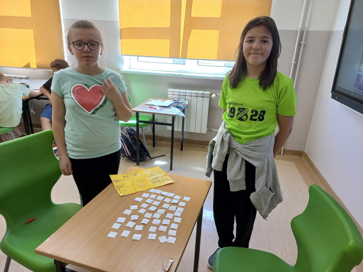 Czwartoklasiści zaprezentowali swoje gry planszowe, które wykonali jako podsumowanie pracy na lekcjach historii. Gry testowaliśmy podczas dzisiejszych zajęć. Okazało się, że zakres materiału z czwartej klasy uczniowie mają w małym palcu. Dodatkowo była to świetna zabawa.