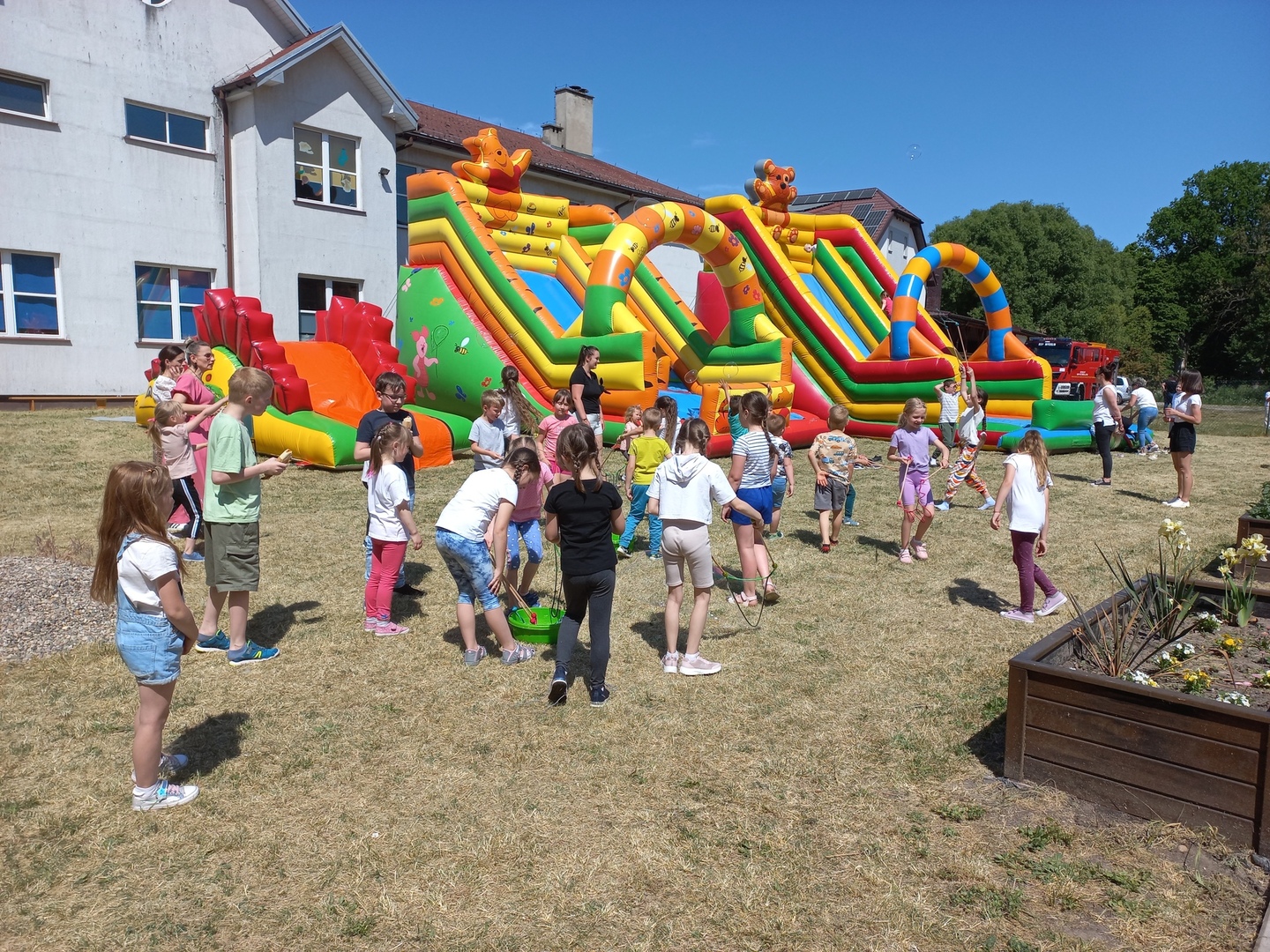 Dzieci zaprezentowały piękne wiersze i piosenki, które podbiły serca wszystkich zebranych Rodziców i Opiekunów. Byliśmy niezmiernie zaszczeni obecnością Pana Wójta Gminy Mycielin Rafała Szelągowskiego oraz Księdza Prałata Mariana Andrzejewskiego, uświetnili oni nasze święto swoją obecnością. Dzisiejsza uroczystość w naszej placówce to nie tylko okazja do prezentacji artystycznych, ale także moment, w którym podkreślamy siłę więzi rodzinnych i wartość wzajemnego wsparcia. W tym wyjątkowym dniu nie mogło zabraknąć atrakcji dla naszych wychowanków z okazji ich święta. Dzieci miały okazję skorzystać z dmuchańców, stworzyć bańki mydlane, pobawić się za pomocą chusty Klanza oraz uczestniczyć w rywalizacji o Puchar Dyrektora Szkoły w rozgrywkach sportowych. Zwycięzcą okazała się klasa 6. Dodatkową atrakcją było pojawienie się niezawodnych przedstawicieli straży OSP KSRG Mycielin. P.Dariusz Korczyński i p. Tomasz Pytliński przeprowadzili dla dzieci pogadankę na temat wyposażenia wozu bojowego. Nasi uczniowie mogli również skorzystać z przejażdżki samochodem strażackim. Składamy serdeczne podziękowania naszym lokalnym stróżom bezpieczeństwa.👨🚒