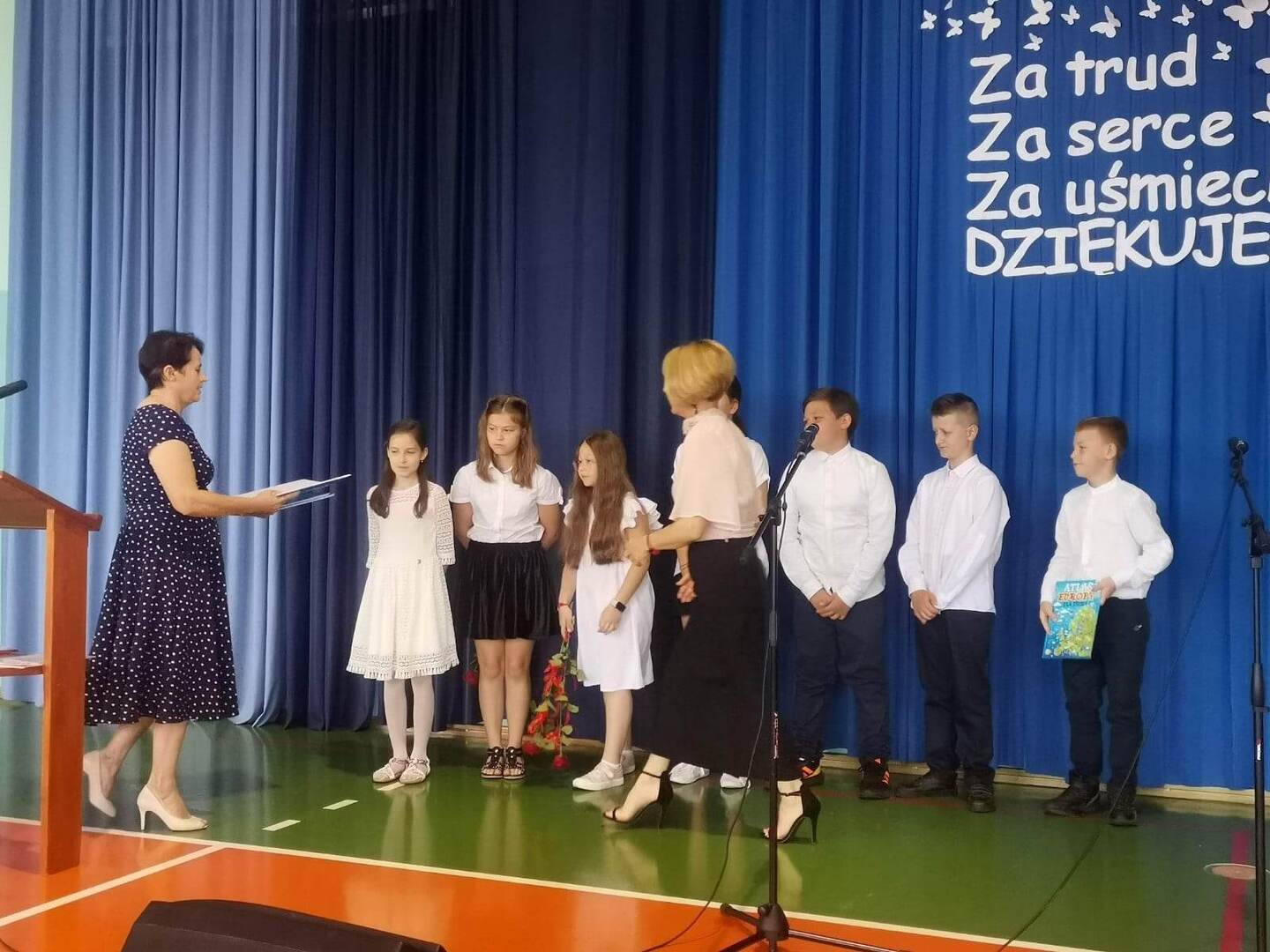 Uroczystość rozpoczęła się wprowadzeniem sztandaru, odśpiewaniem hymnu i przemówieniem dyrektor szkoły p.Małgorzaty Kraszkiewicz. Po części oficjalnej uczniowie otrzymali świadectwa z wyróżnieniem, listy pochwalne oraz nagrody książkowe, zaś rodzice listy gratulacyjne. Uczniowie klasy III oraz VIII przedstawili ciekawy program artystyczny, który przygotowali pod czujnym okiem swoich wychowawczyń: p. Doroty Wasik oraz p. A.Różańskiej. Oprawą muzyczną uroczystości zajął się chór szkolny i zespół fletowy pod batutą p.Arlety Lis. Ta podniosła chwila podsumowania całokształtu pracy edukacyjnej i wychowawczej przyniosła wzruszenie oraz chwile refleksji. Dziękujemy za liczne przybycie zaproszonym gościom oraz przyjaciołom naszej placówki. Naszym wspaniałym Uczniom oraz Absolwentom życzymy radosnych, bezpiecznych i udanych wakacji.