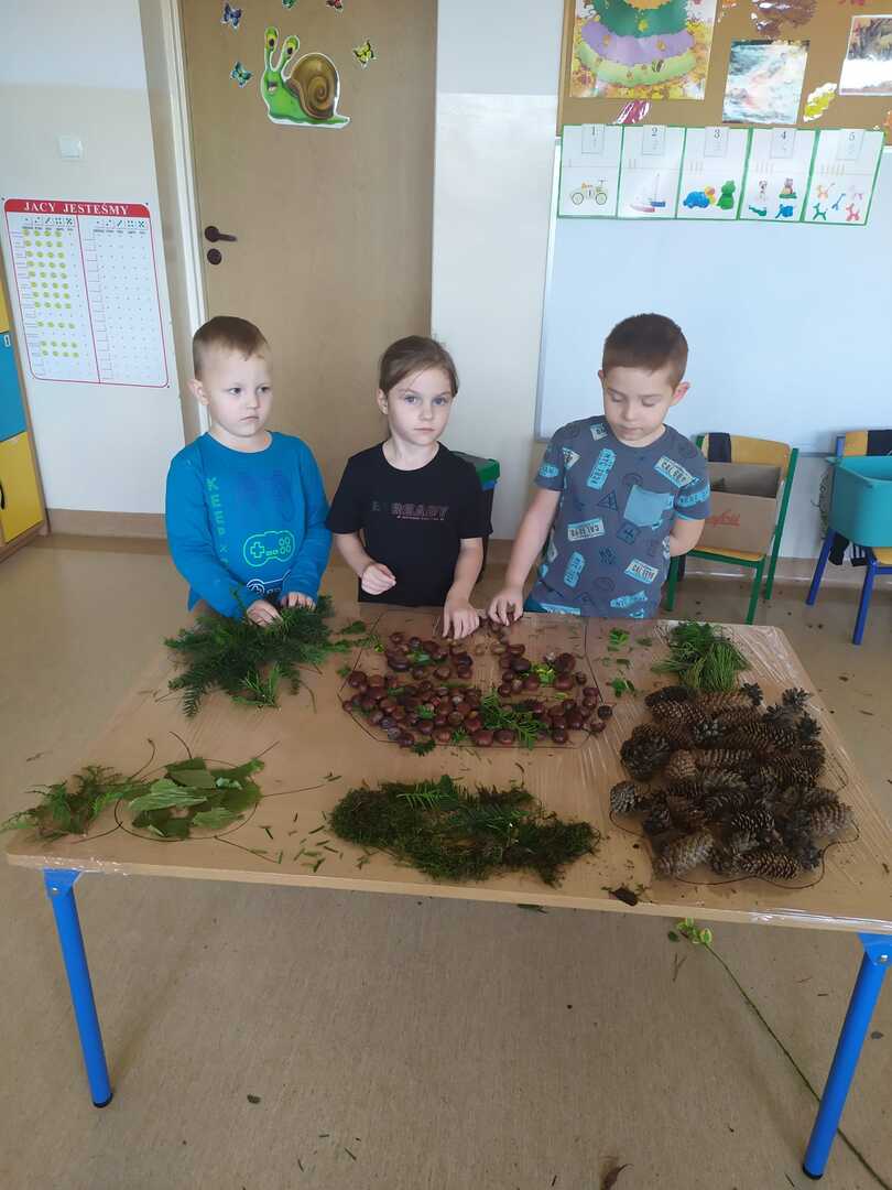 Zajęcia sensoryczno - przyrodnicze z wykorzystaniem darów lasu u naszych przedszkolaków. Takie zabawy są niezwykle ważne dla dzieci, zarówno dla rozwoju ich wyobraźni jak i budowania integracji sensorycznej, czyli prawidłowej organizacji wrażeń sensorycznych dostarczanych przez receptory.