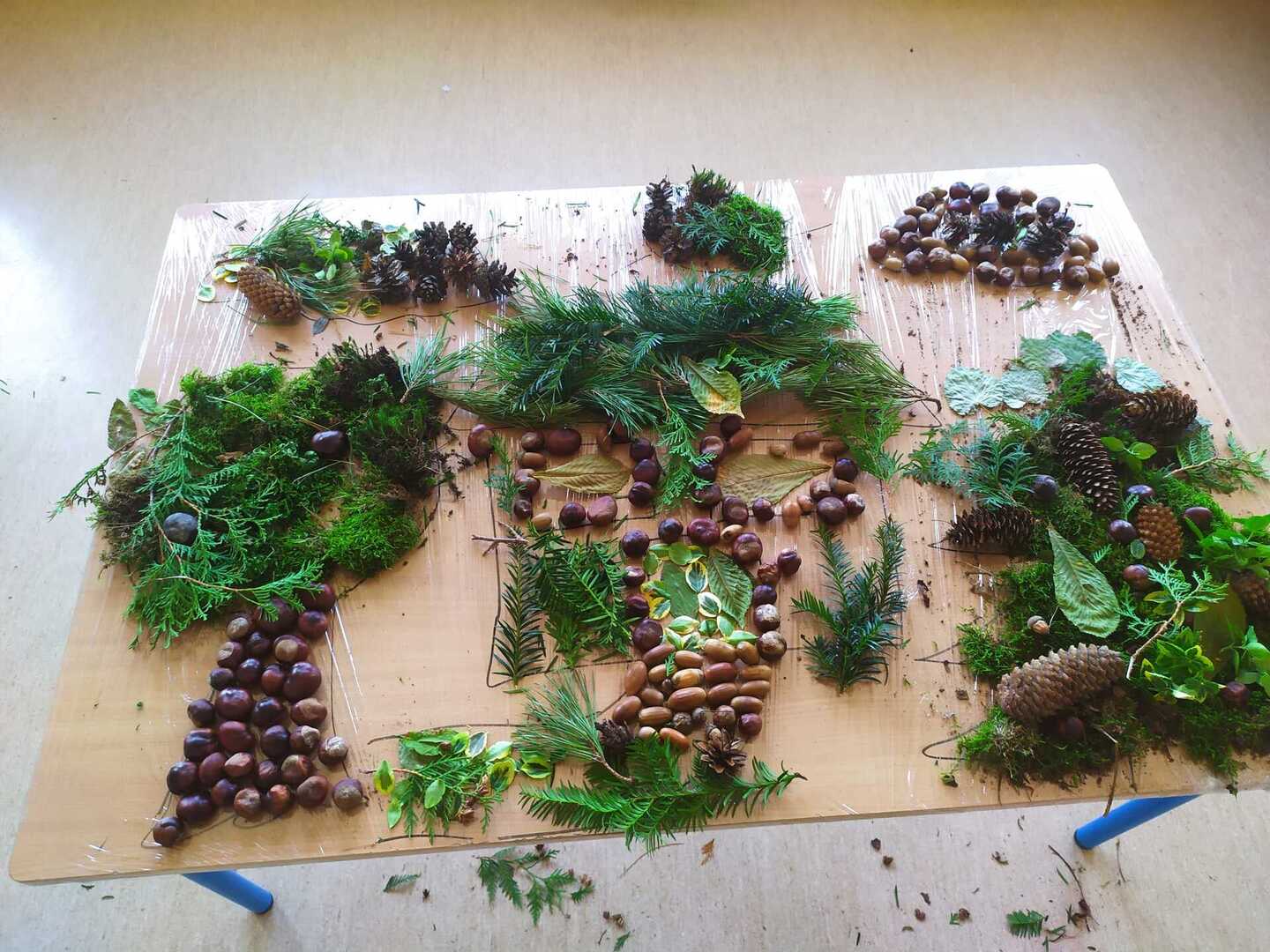 Zajęcia sensoryczno-przyrodnicze z wykorzystaniem darów lasu.