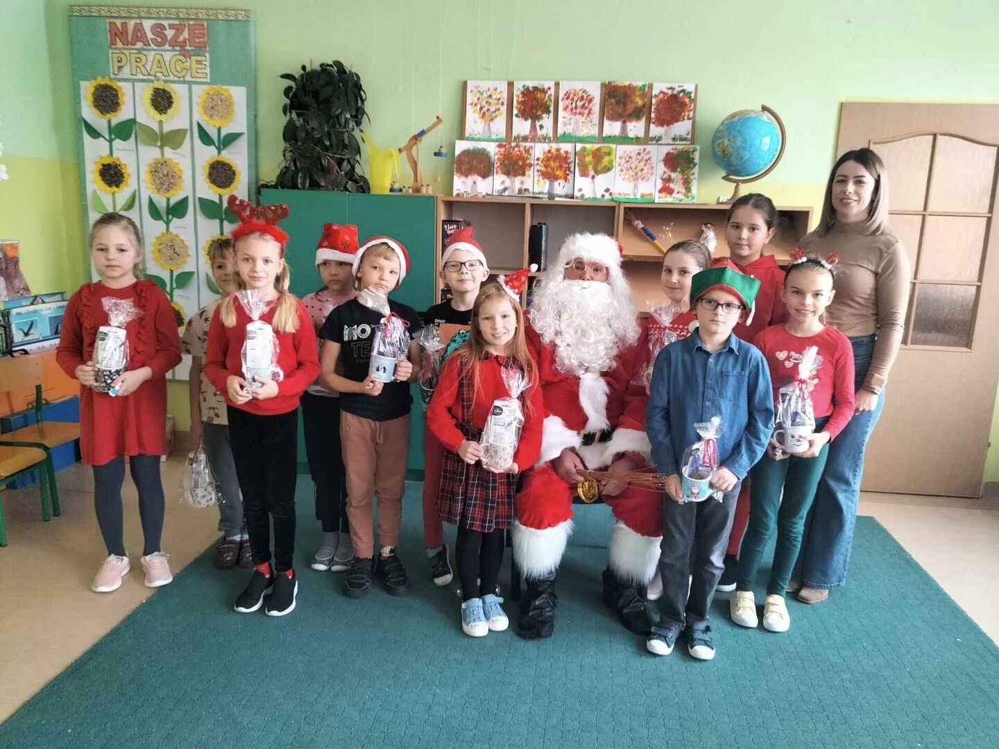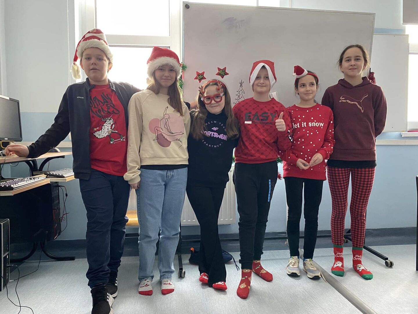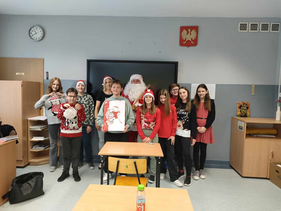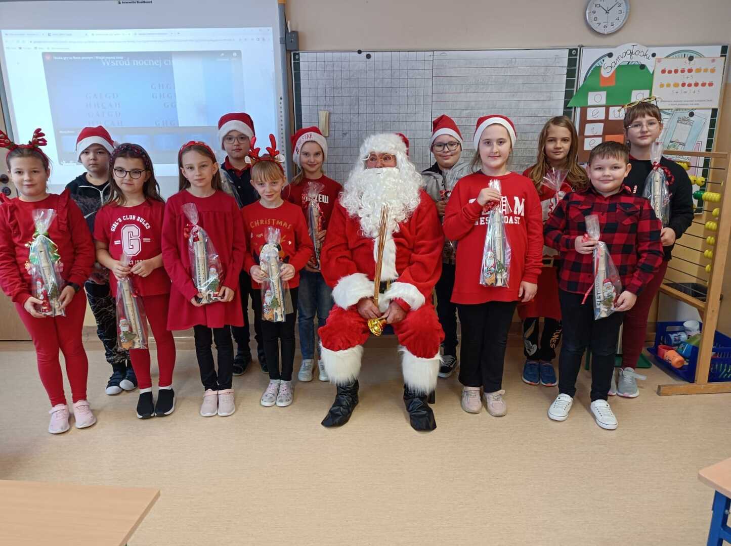 Święta Bożego Narodzenia to czas, kiedy możemy oderwać się od codzienności i w pełni zanurzyć w magicznej atmosferze. Dziś obchodziliśmy tradycyjne mikołajki. Aby poczuć magię zbliżających się świąt uczniowie, ale również pracownicy szkoły, mieli na sobie elementy świątecznego stroju np. czapki Mikołaja, przepaski z rogami renifera, świąteczne sweterki, skarpetki lub po prostu coś czerwonego. Dzieci odwiedził tradycyjnie też Mikołaj.