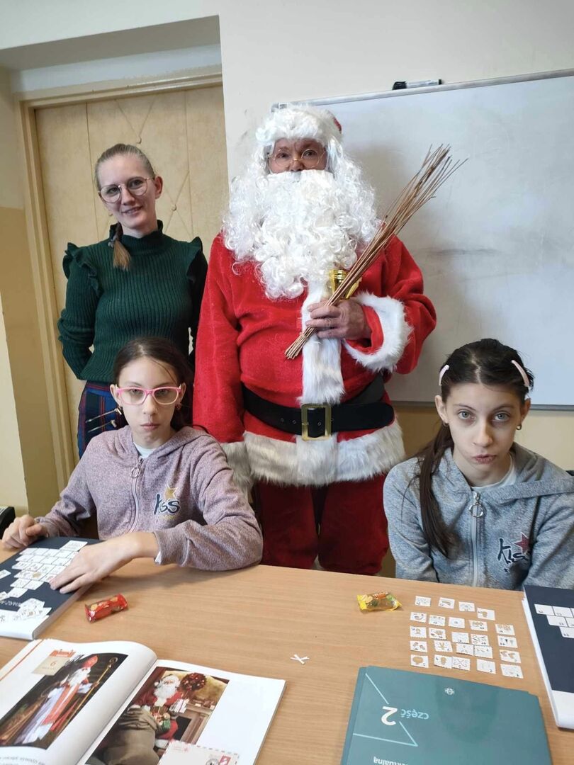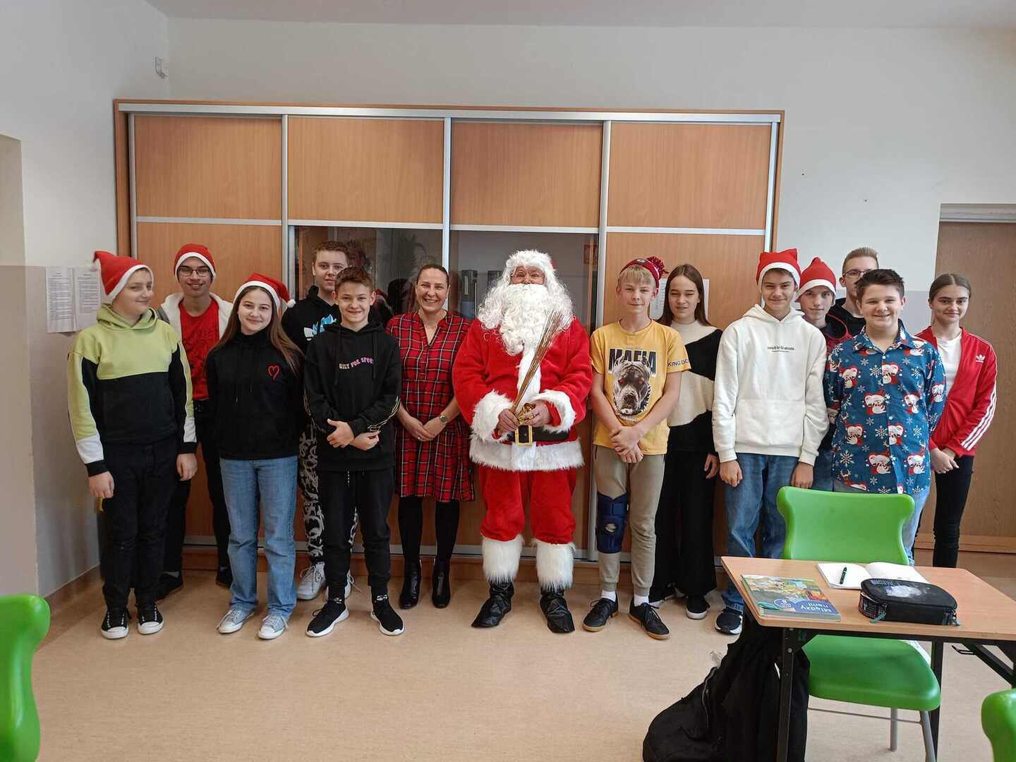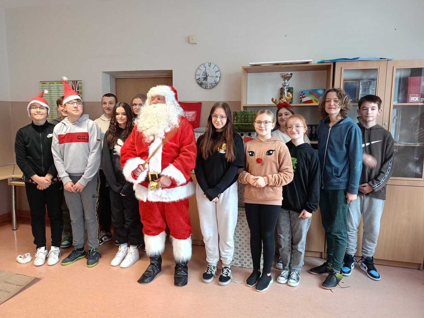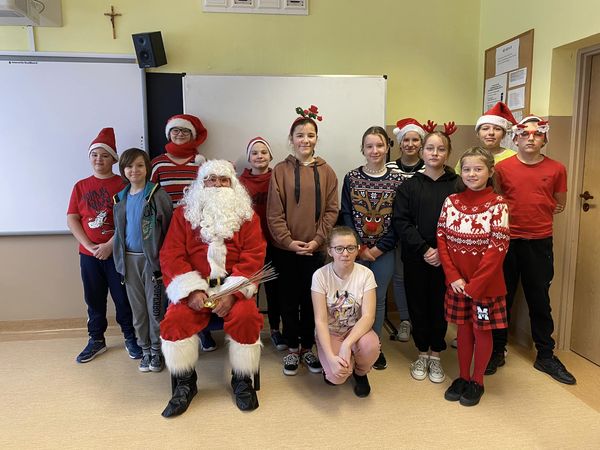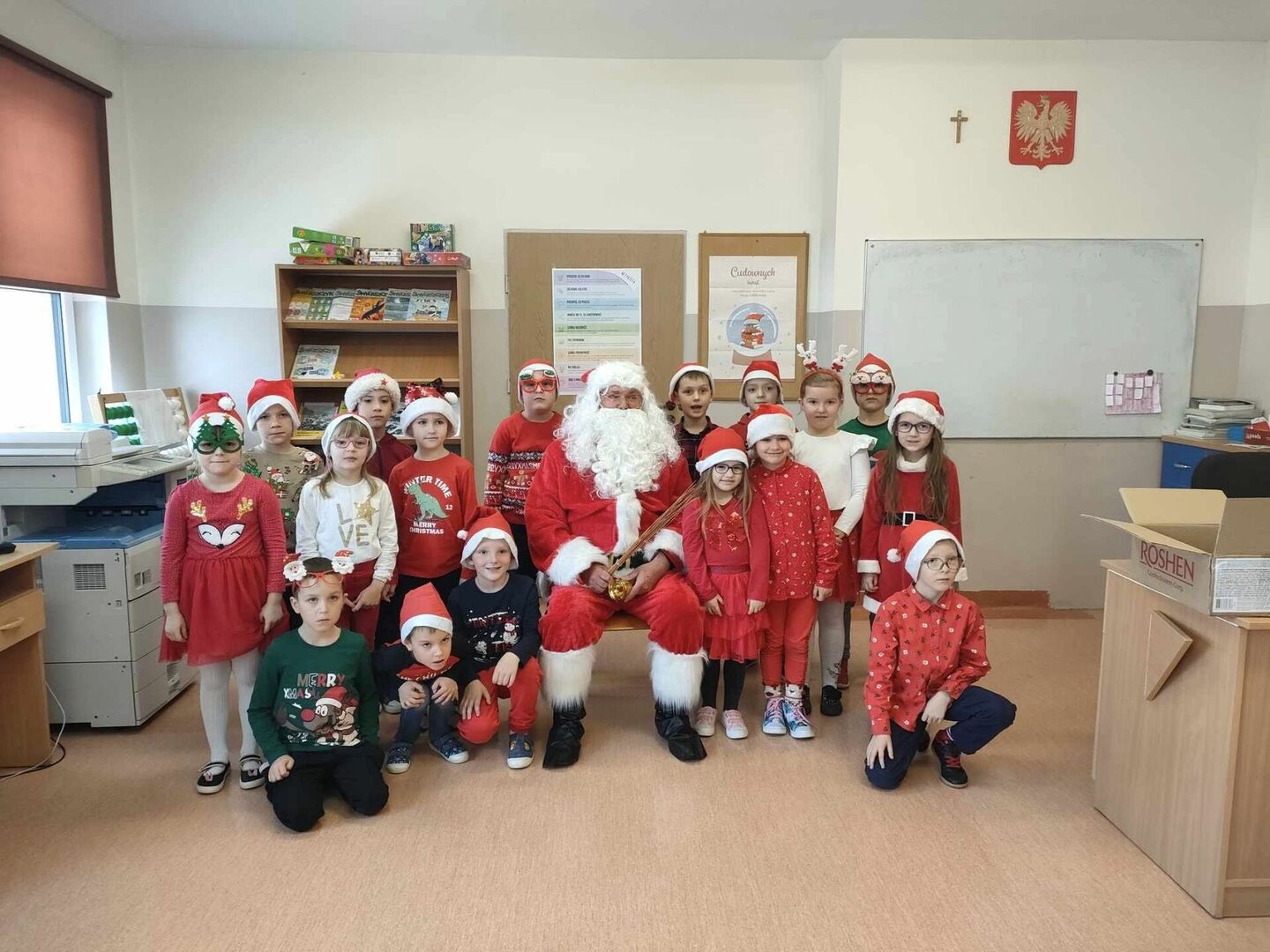 Święta Bożego Narodzenia to czas, kiedy możemy oderwać się od codzienności i w pełni zanurzyć w magicznej atmosferze. Dziś obchodziliśmy tradycyjne mikołajki. Aby poczuć magię zbliżających się świąt uczniowie, ale również pracownicy szkoły, mieli na sobie elementy świątecznego stroju np. czapki Mikołaja, przepaski z rogami renifera, świąteczne sweterki, skarpetki lub po prostu coś czerwonego. Dzieci odwiedził tradycyjnie też Mikołaj.