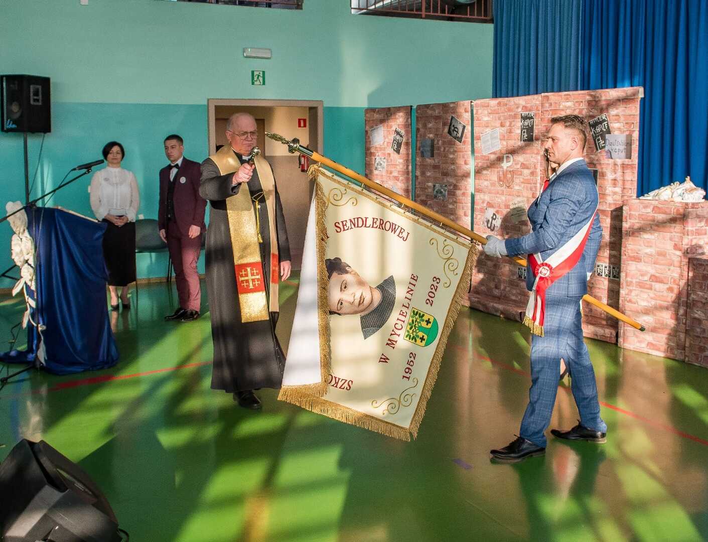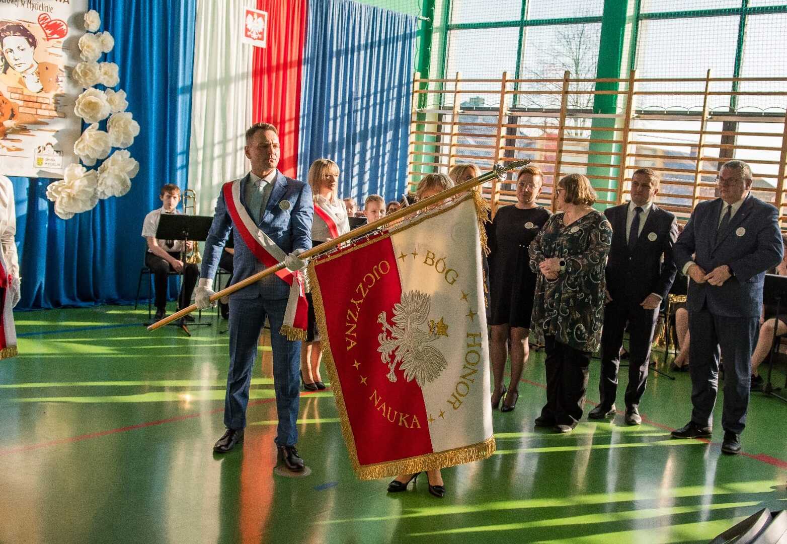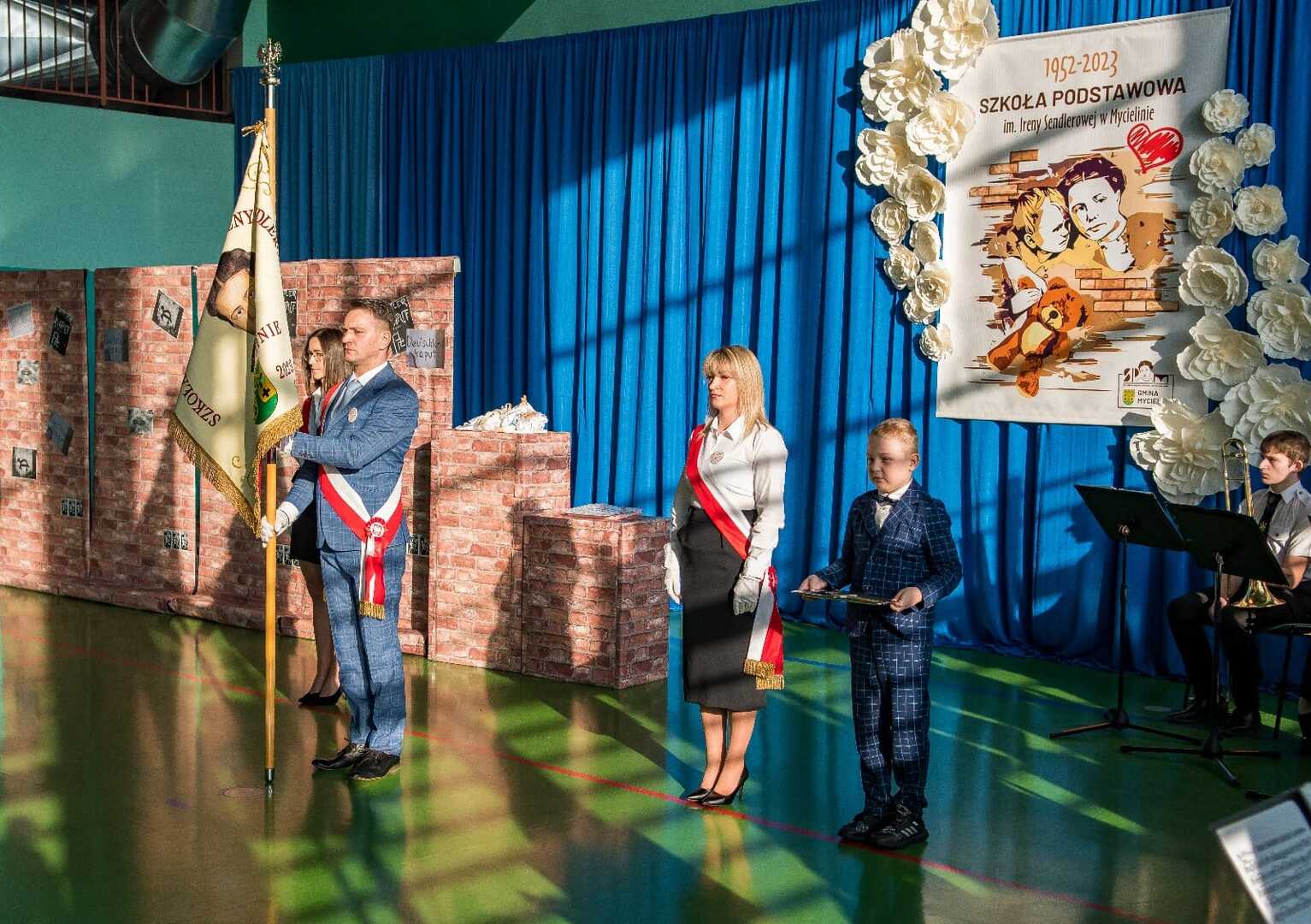 Takie wydarzenie, jakie miało miejsce w dniu 10 lutego 2024 roku, zdarza się tylko raz w historii szkoły, a ten dzień zostanie zapisany w kronikach jako jeden z najważniejszych. W tym bowiem dniu odbyła się uroczystość przekazania sztandaru ufundowanego przez Radę Rodziców i nadanie szkole imienia Ireny Sendlerowej. Uroczystość rozpoczęła się o godzinie 14:00, w budynku placówki, w obecności delegacji szkół z terenu Gminy Mycielin z pocztami sztandarowymi. Poprowadzili ją p. Agnieszka Matuszewska i p. Mateusz Latański. W części oficjalnej wzięli udział zaproszeni goście, wśród których znaleźli się: