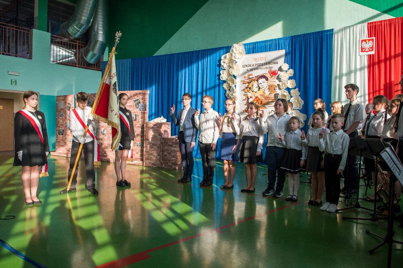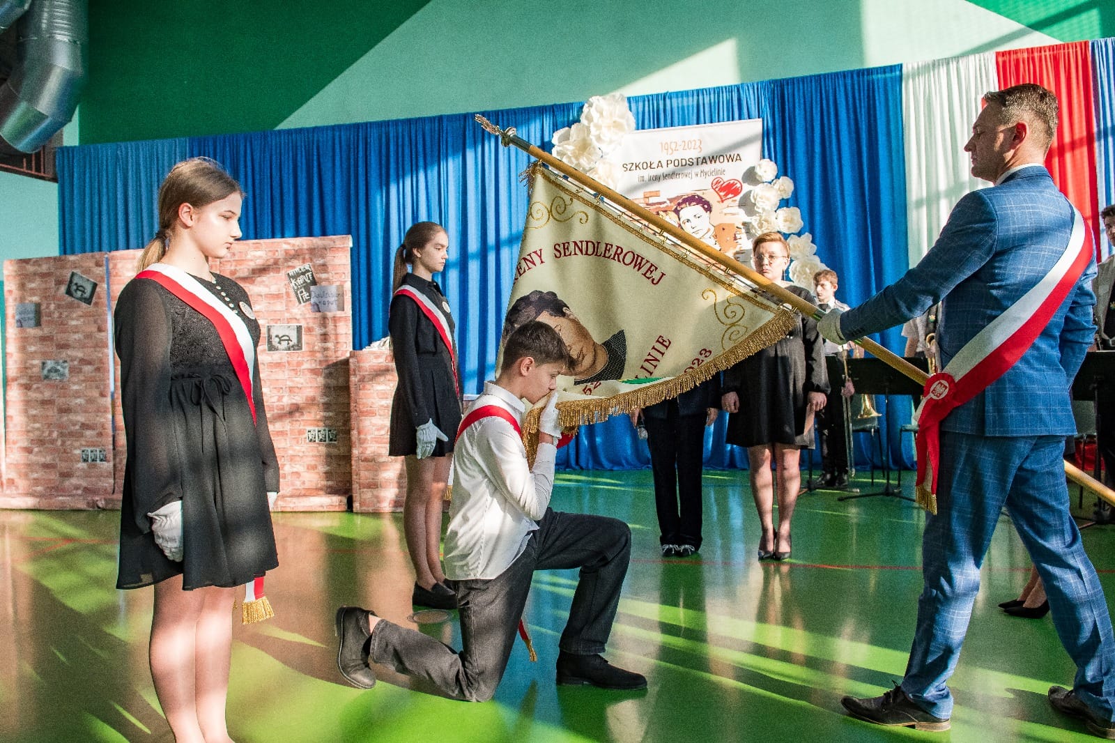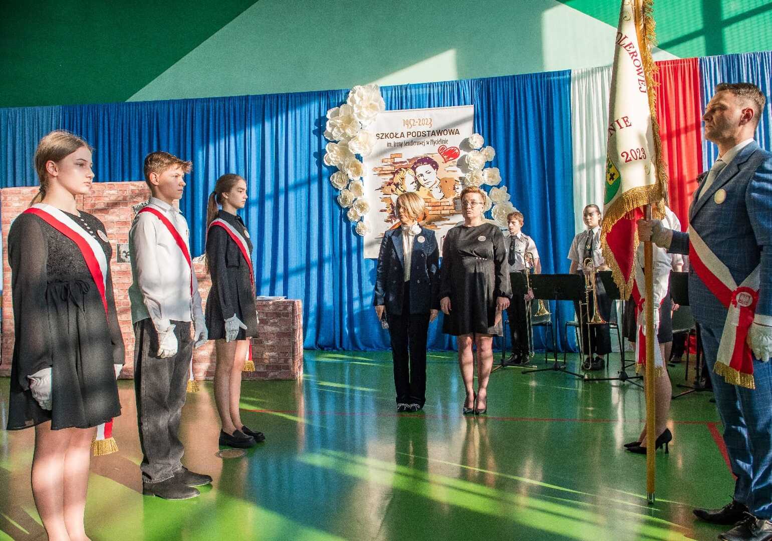 Takie wydarzenie, jakie miało miejsce w dniu 10 lutego 2024 roku, zdarza się tylko raz w historii szkoły, a ten dzień zostanie zapisany w kronikach jako jeden z najważniejszych. W tym bowiem dniu odbyła się uroczystość przekazania sztandaru ufundowanego przez Radę Rodziców i nadanie szkole imienia Ireny Sendlerowej. Uroczystość rozpoczęła się o godzinie 14:00, w budynku placówki, w obecności delegacji szkół z terenu Gminy Mycielin z pocztami sztandarowymi. Poprowadzili ją p. Agnieszka Matuszewska i p. Mateusz Latański. W części oficjalnej wzięli udział zaproszeni goście, wśród których znaleźli się: