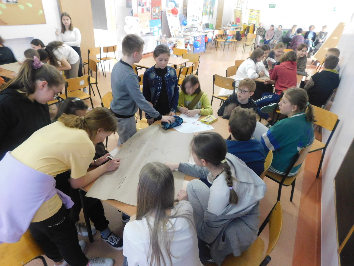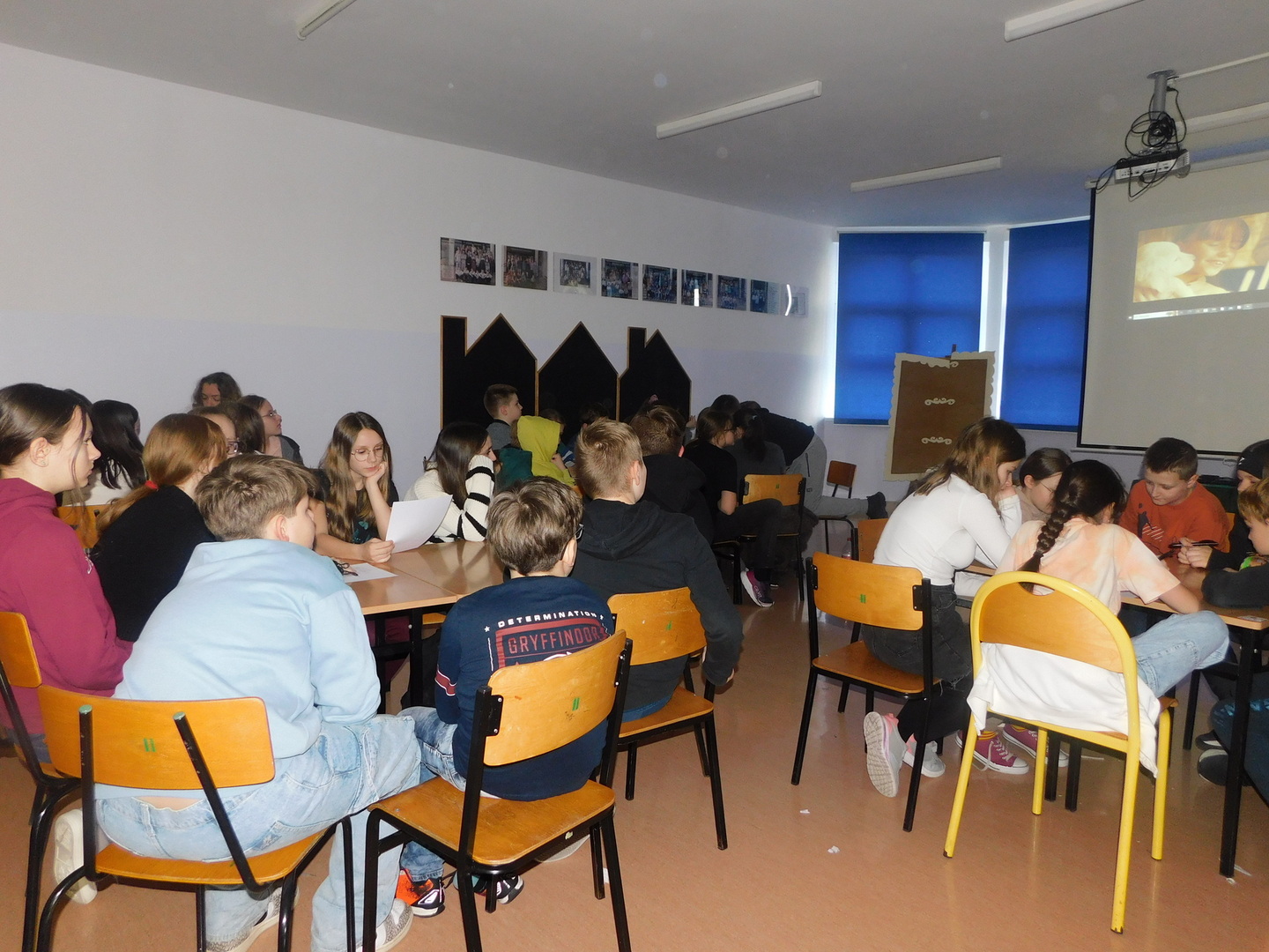 Każda z klas, pod okiem wychowawców przygotowała stoiska tematyczne na temat wcześniej wylosowanych krajów. Koordynatorem działań była p. Agnieszka Matuszewska. Następnie uczniowie w podzielonych grupach zmierzyli się zadaniami dotyczącymi bezpiecznych działań w Internecie. W zespołach rozwiązywali zagadki w escape roomie, wykazując się zankomitą wiedzą i umiejętnościami z zakresu technologii informacyjnych. Nad przygotowaniami tej inicjatywy czuwała p. Aneta Różańska. Ponadto dzieci z naszej szkoły zapoznali się z fragmentami powieści napisanej przez Tolkiena. Czytali głośno fragmenty przyniesionych pozycji oraz oglądali przygotowany film edukacyjny, dzięki czemu jeszcze lepiej zapoznały się z postacią pisarza. Nie mogło też zabraknąć tradycyjnego przemarszu z gaikiem. W trakcie przemarszu przez mycielińską wieś uczestnicy nieśli marzannę, barwne kwiaty, symbole wiosny oraz instrumenty przygotowane samodzielnie. Ich dźwięk miał odstraszać zimę i przegonić ją daleko na biegun. W trakcie, gdy żegnaliśmy marzannę dzieci śpiewały piosenki o tematyce wiosennej, przygotowane pod opieką swoich wychowawczyń. Mogły też zaobserwować pierwsze oznaki wiosny. Zima odeszła, aby znów do nas wrócić za rok. Jej miejsce zajął zielony, barwny gaik, z którym dzieci powróciły do placówki w wyśmienitych nastrojach.