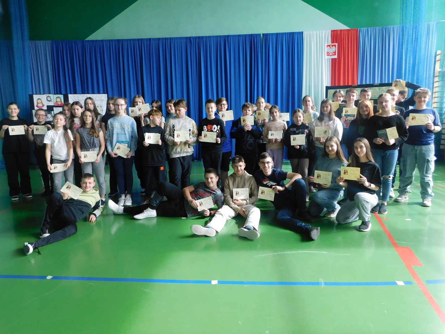 27.03.2024r. uczniowie oddziału przedszkolnego oraz klas I-III pod opieką swoich wychowawczyń - p.E.Kozyry, p.A.Gądy, p. K.Raczkowskiej, p.Z.Waszak oraz p.D.Wasik wprowadzili nas w nastrój, który miał nam przybliżyć nadchodzące Triduum Paschalne oraz Święto Zmartwychwstania Pańskiego. Nasze koleżanki i koledzy ukazali nam tradycje tych świąt wykonując piękny montaż słowno-muzyczny. Nie zabrakło też świątecznych życzeń, przekazanych od Pani Dyrektor. Ponadto mogliśmy podsumować konkurs plastyczny zorganizowany przez szkolnego katechetę p.P. Żubrowskiego w ramach obchodów rekolekcji wielkopostnych.